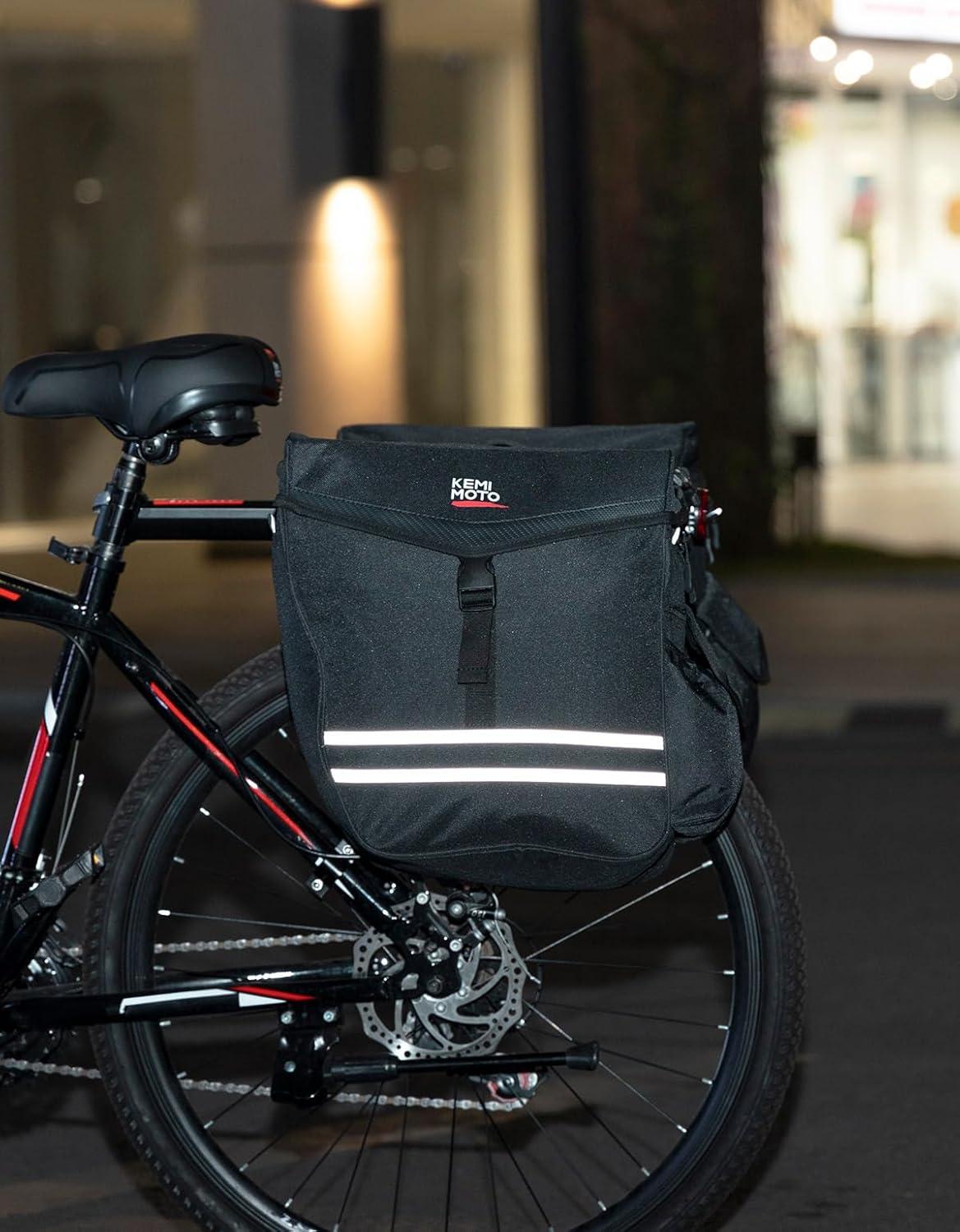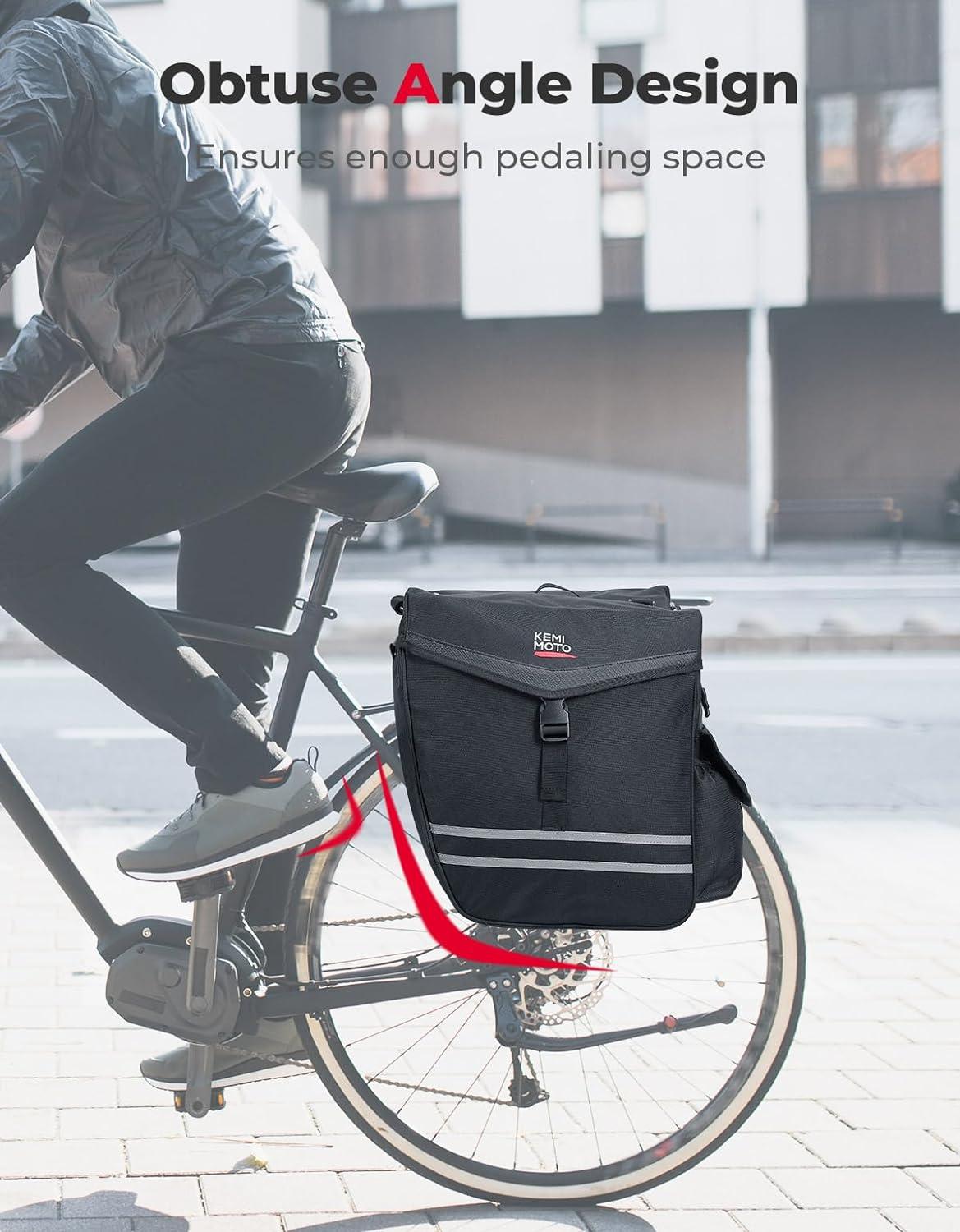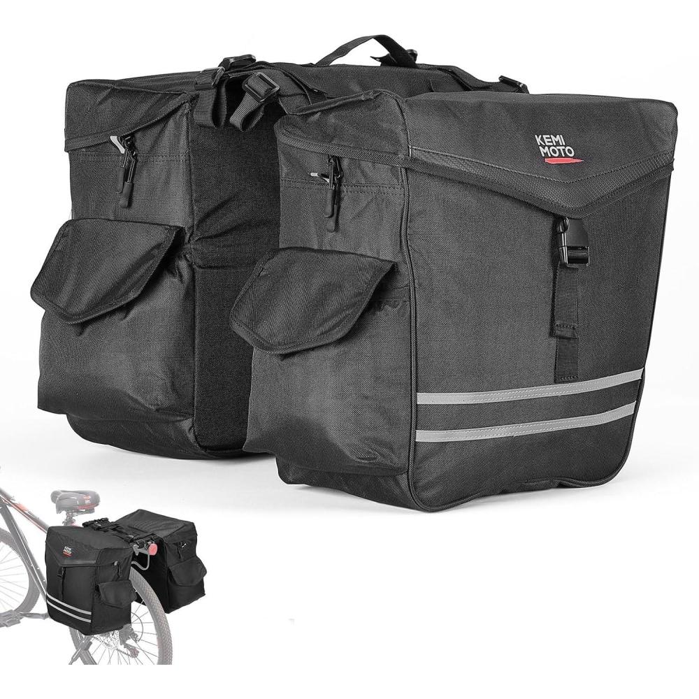 40L Large Storage Capacity, Carry More: This KEMIMOTO bike panniers has a 40L capacity, with each side holding 20L. Each bag features two main compartments and water bottle pockets. Ample space for daily essentials, gear, and plenty of food and drinks. Ideal for grocery shopping, commuting, outdoor picnics, and long trips
