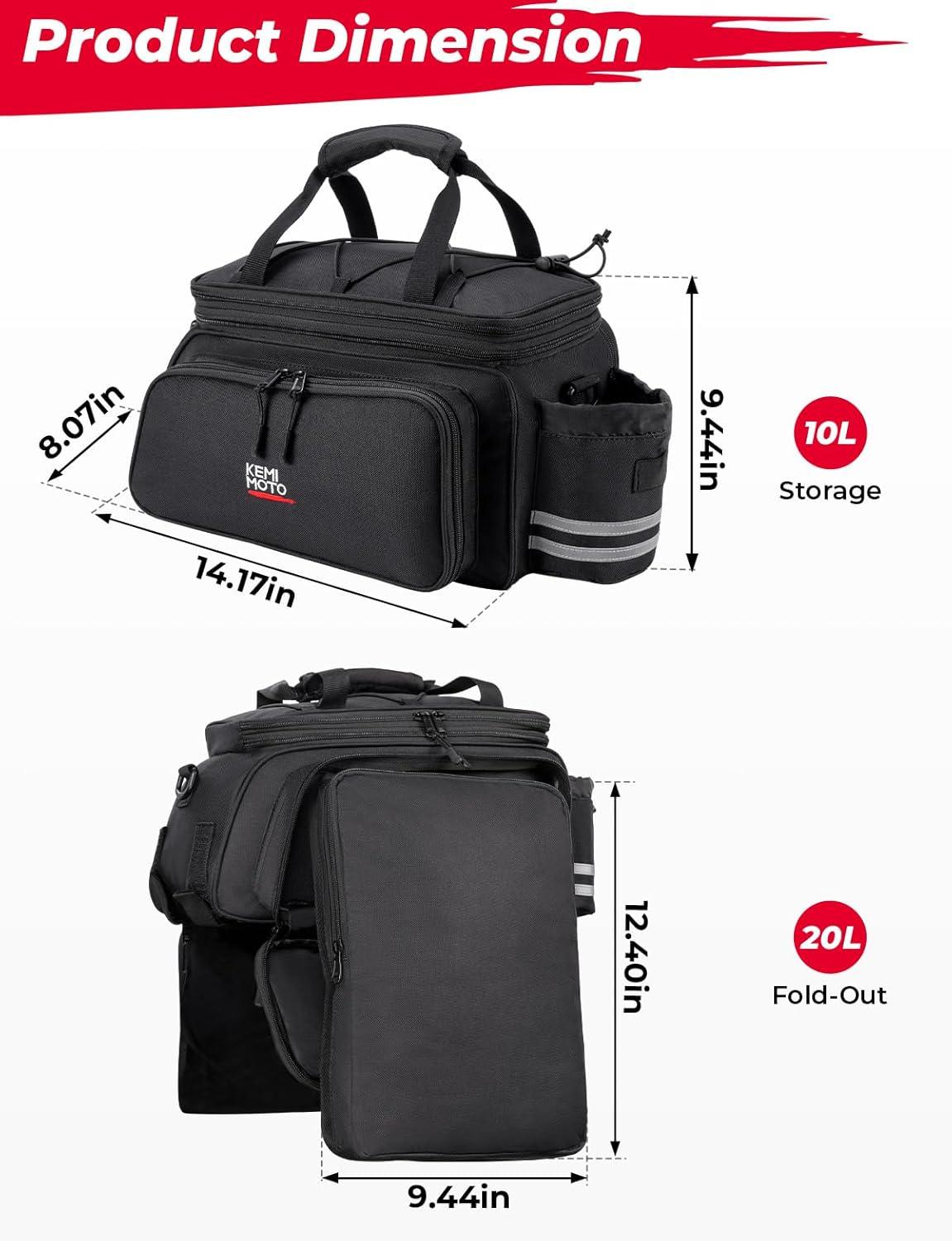 KEMIMOTO Bike Rear Rack Bag Bicycle Trunk Bag Expandable 10-20L Capacity Water Resistant Multifunctional Bicycle Pannier with Rain Cover Bike Saddle Bag for Rear Rack Shopping Commuter Cycling Trip(Classic)