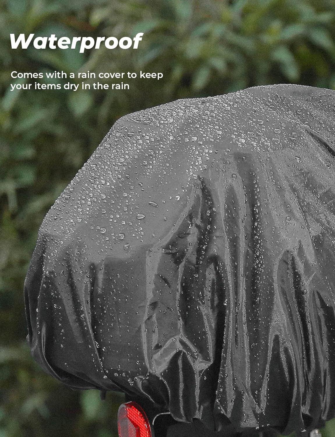 Water-Resistant: The bike rear rack bag is made of heavy 600D Oxford fabric with a water-resistant PU coating. It also comes with a removable rain cover to keep bicycle rack bag dry in the rain