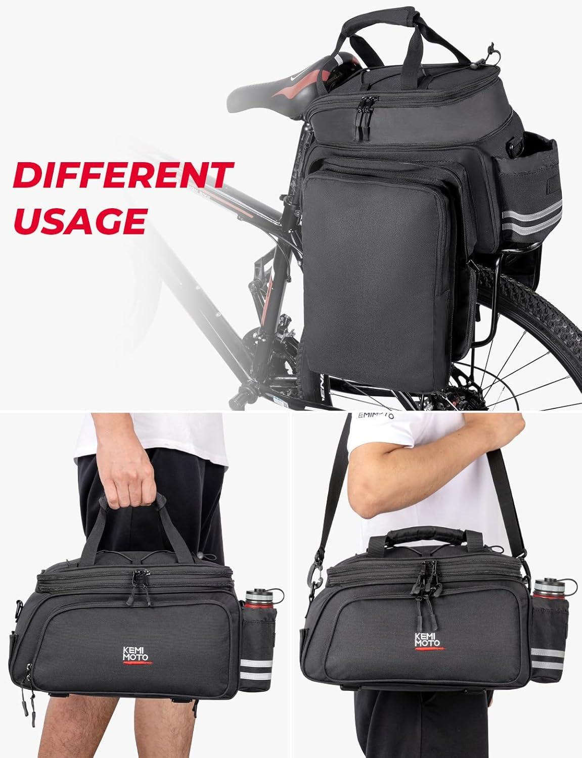 imageKEMIMOTO Bike Rear Rack Bag Bicycle Trunk Bag Expandable 1020L Capacity Water Resistant Multifunctional Bicycle Pannier with Rain Cover Bike Saddle Bag for Rear Rack Shopping Commuter Cycling TripClassic