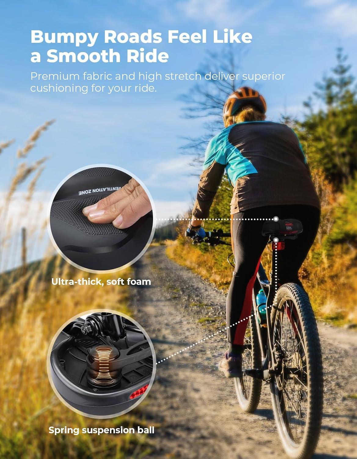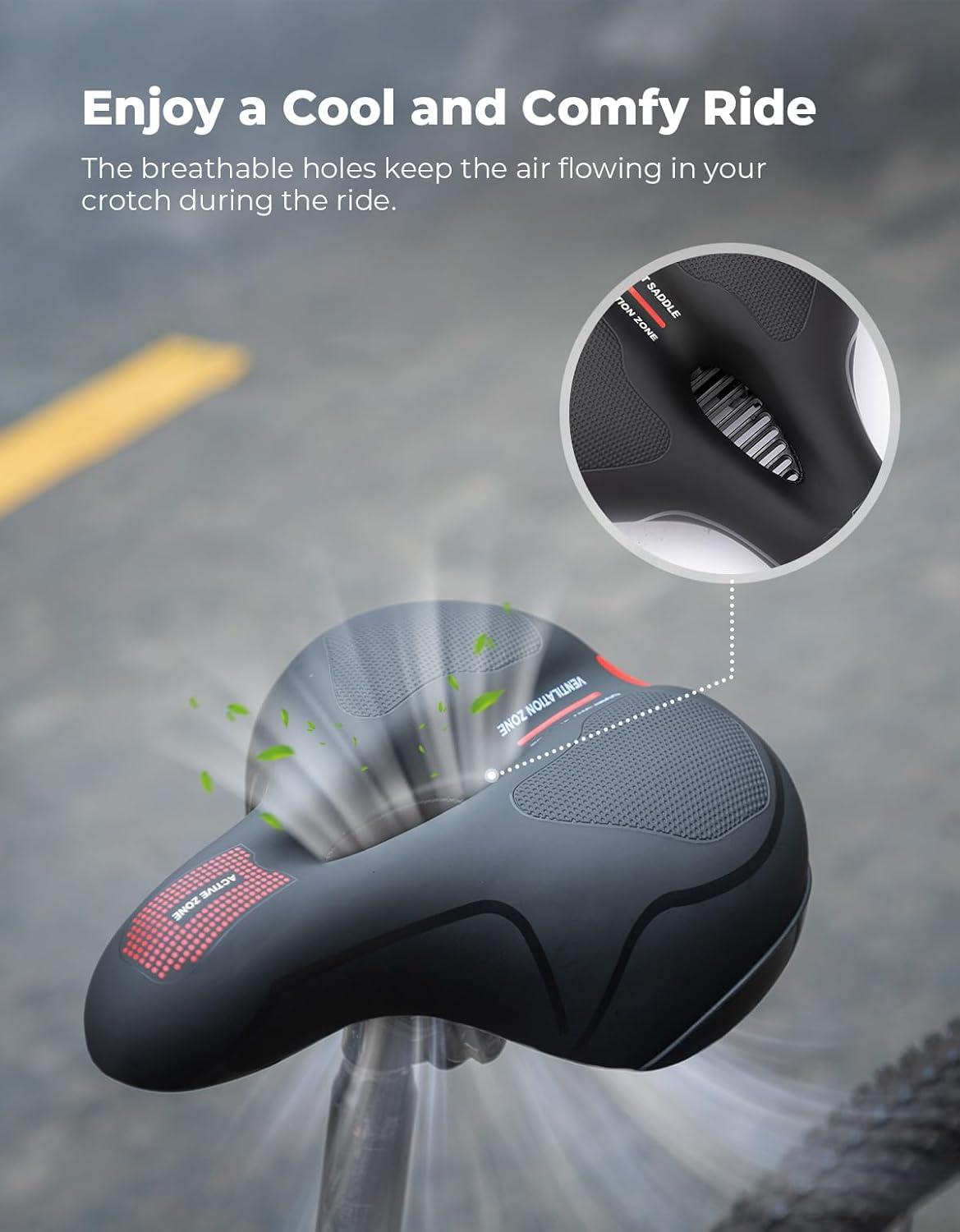 Enhanced Seating Comfort: The bike seat for men and women features a ventilated design that promotes air circulation, keeping you cool. Enjoy a fun and healthy long-distance journey. Maximum load: 220lb
