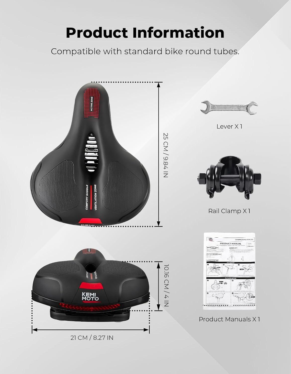 KEMIMOTO Bike Seat Cushion with Soft Foam Padded, Comfortable Bike Seat for Men Women, Bicycle Saddle for Touring, Exercise Bicycle, Commuter, Travel(City)
