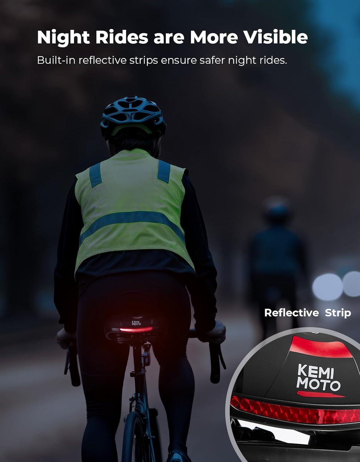 Reflective Design: The rear of the saddle is equipped with reflective strips, which increase visibility during dusk or nighttime riding, ensuring your safety