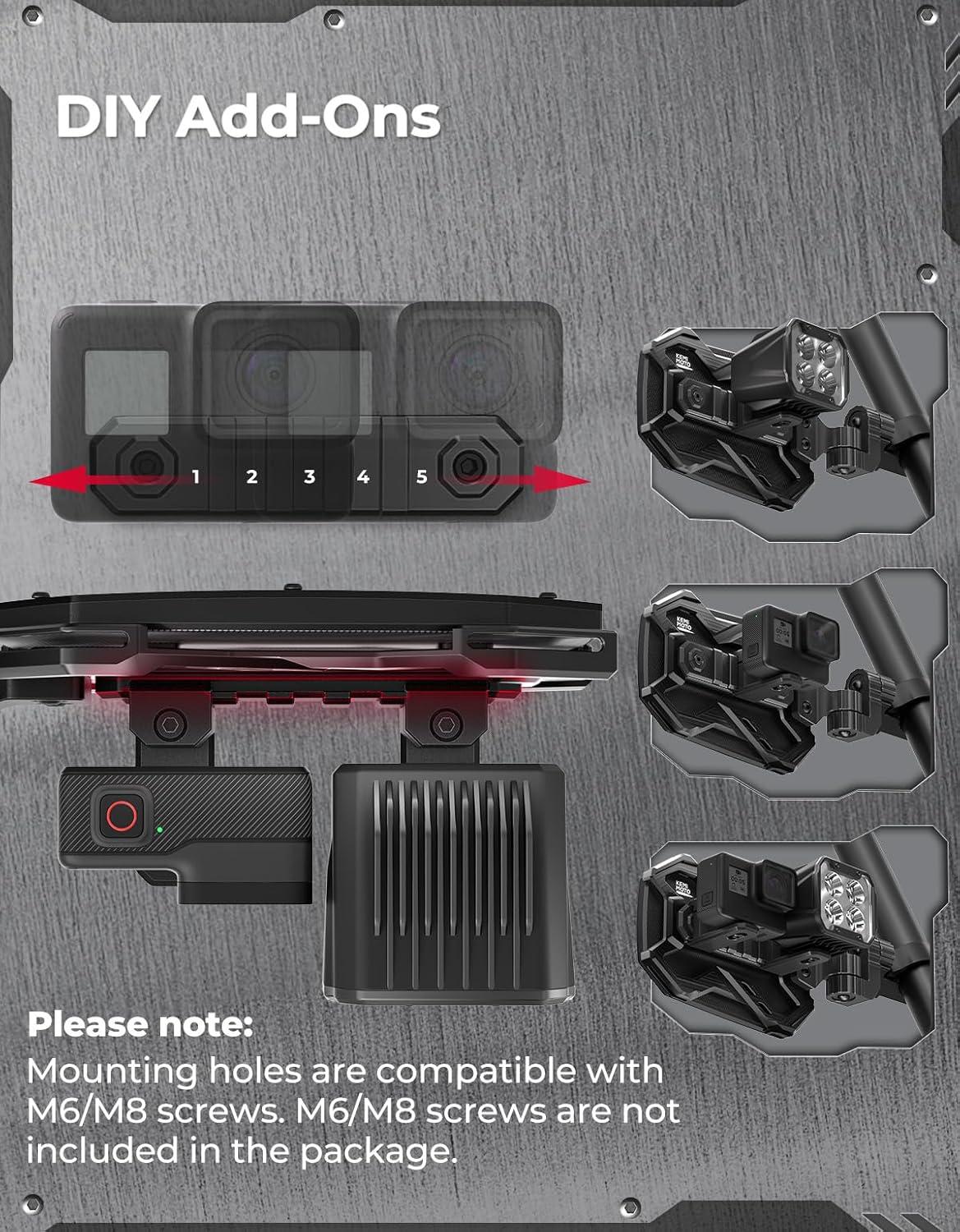Integrated Adjustable Light Mount: The sliding track light mount design offers a variety of installation options. Its unique design allows you to freely select the mounting position for work lights, or even install two work lights or compatible with other devices like a GoPro