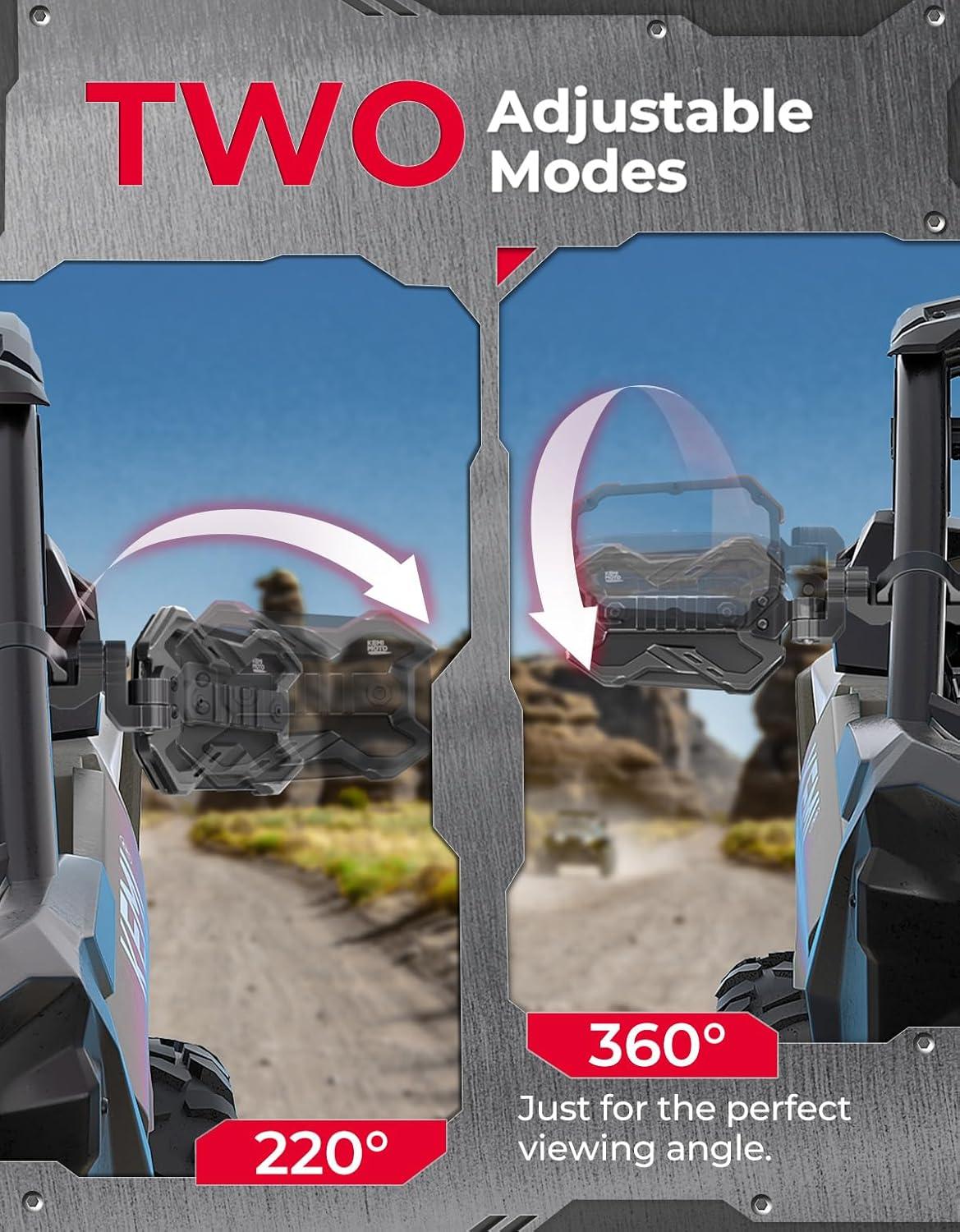Enhanced Visibility: Enjoy a wider field of view with the large, convex glass that combines style and functionality. Ensure everything stays within sight with your off-road rearview mirror. Enhance your safety driving experience