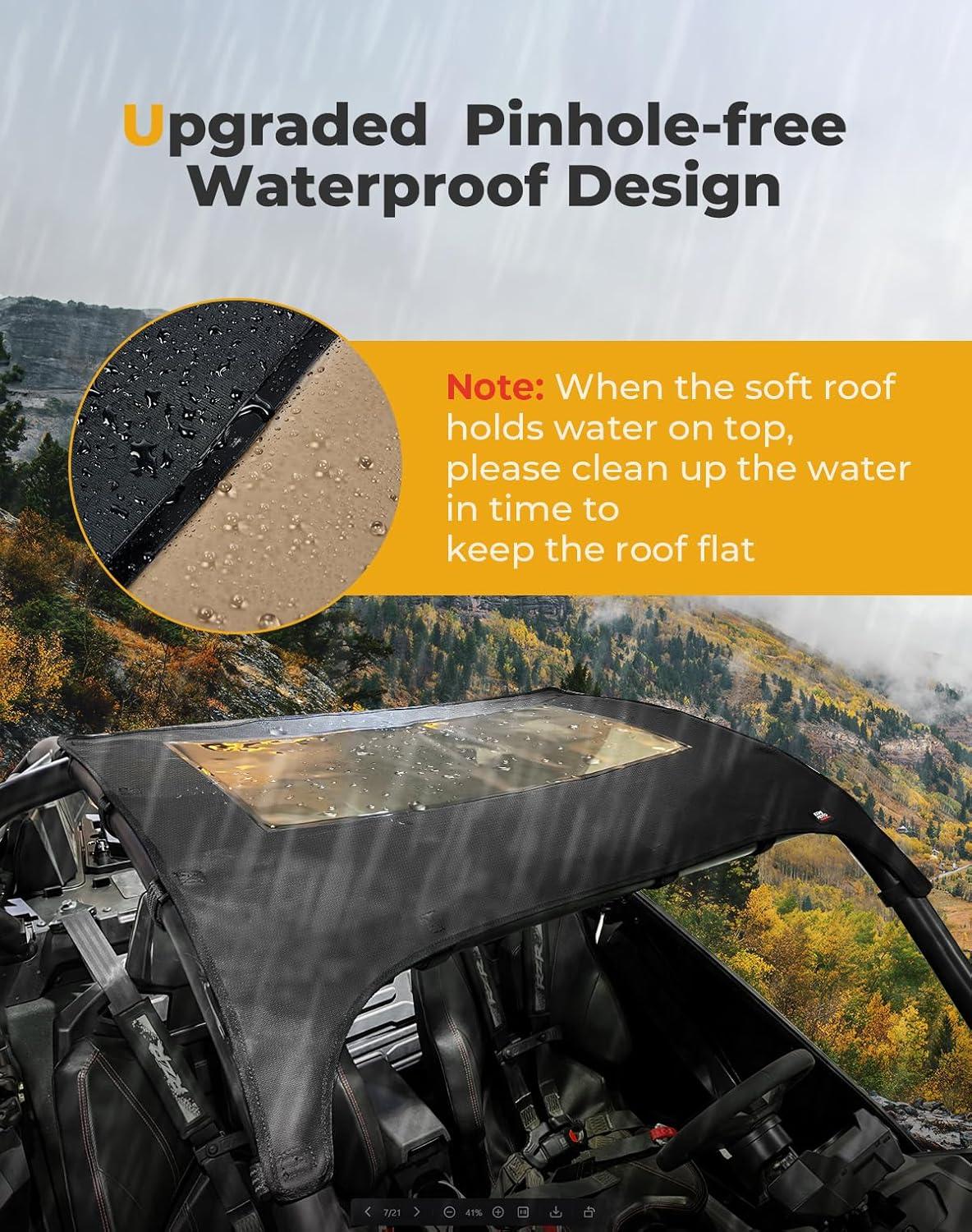 Durable Soft Roof: Constructed to be completely waterproof, this soft roof is made from durable PVC-coated Oxford cloth that effectively withstands wear and tear, repels UV rays, and remains vibrant without fading
