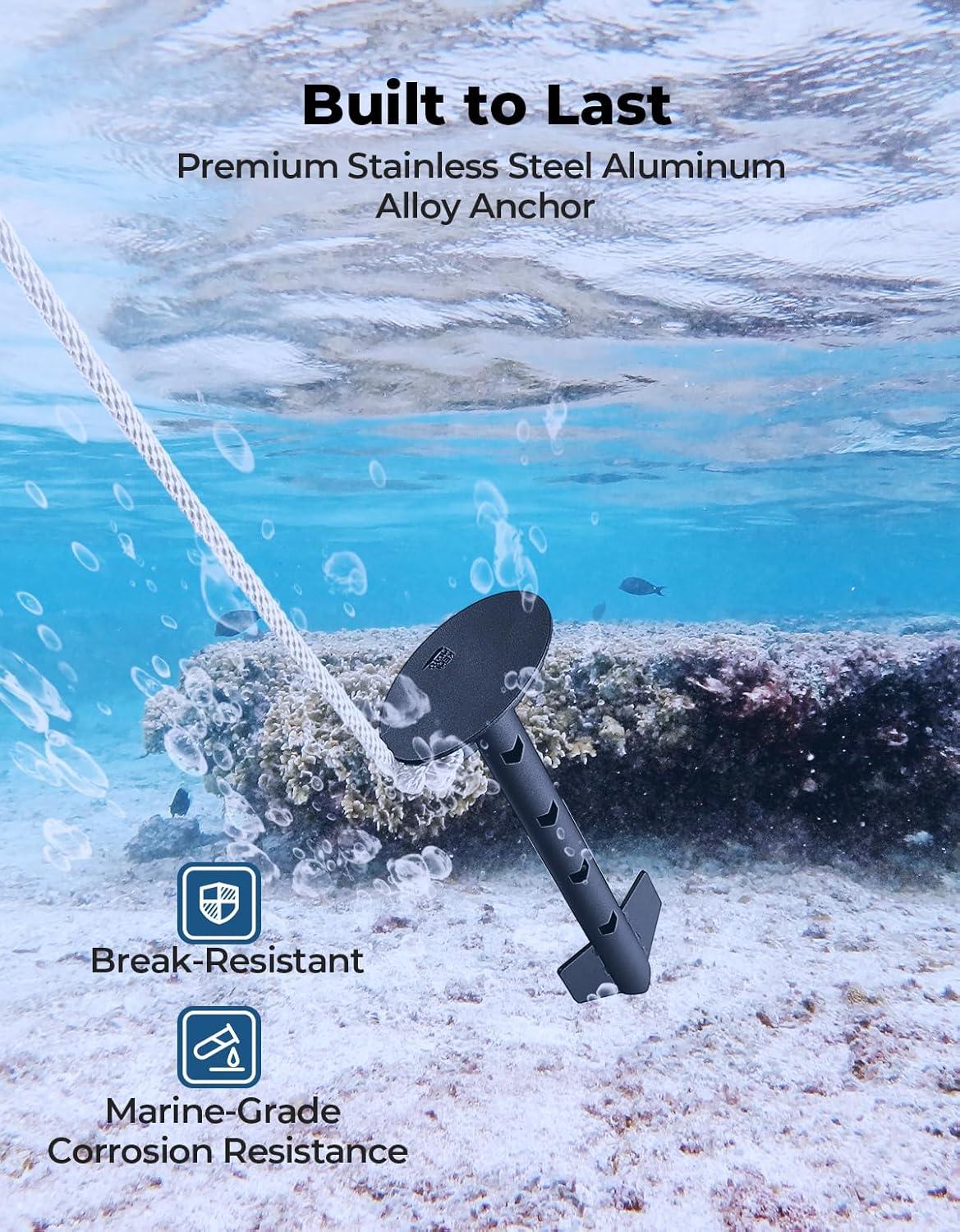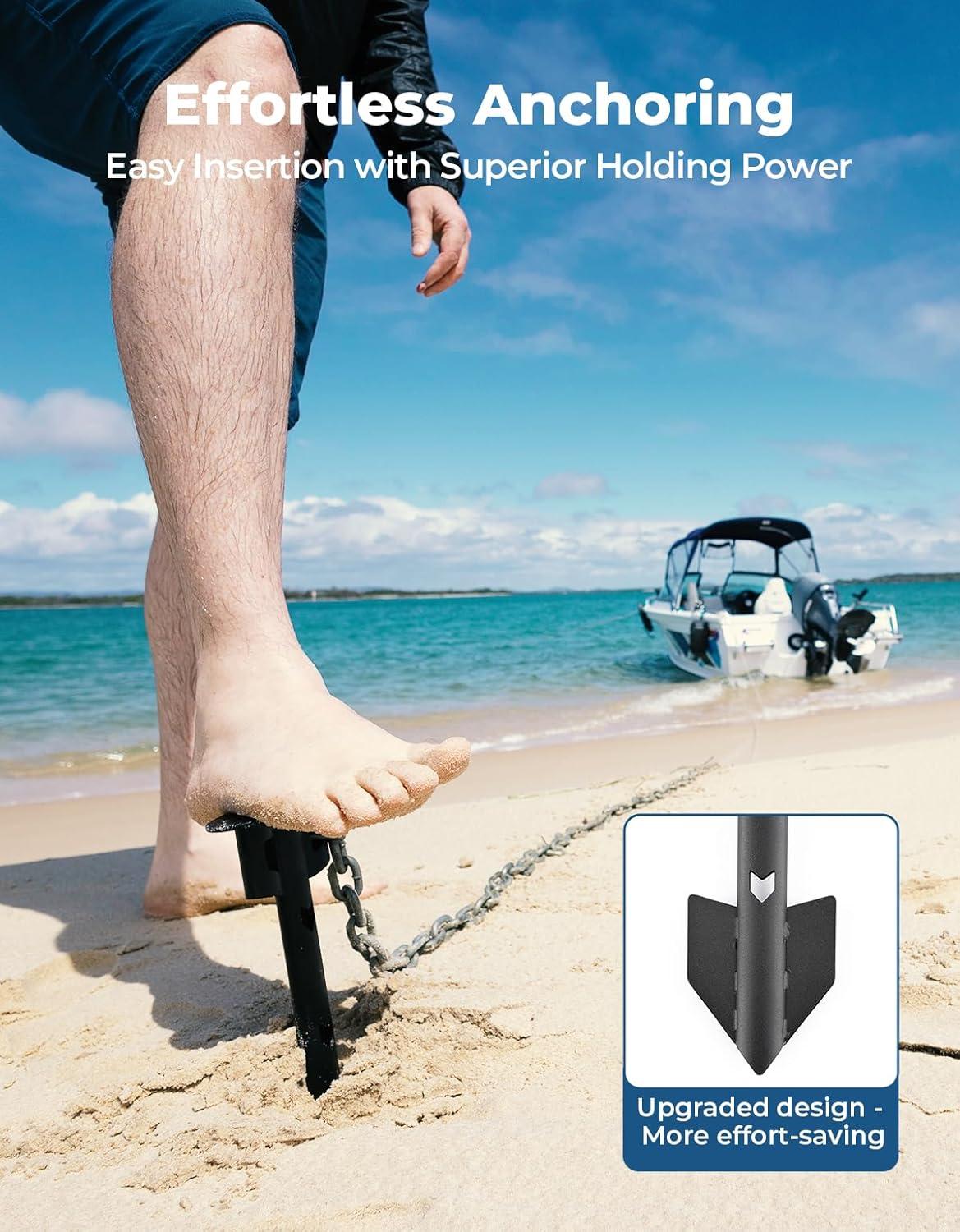 Innovative Easy-Set Design: To streamline your anchoring process, we've meticulously designed the top surface of our anchor to be flat, allowing you to quickly and firmly set it into the sand with a simple step of your foot, ensuring your boat's stability