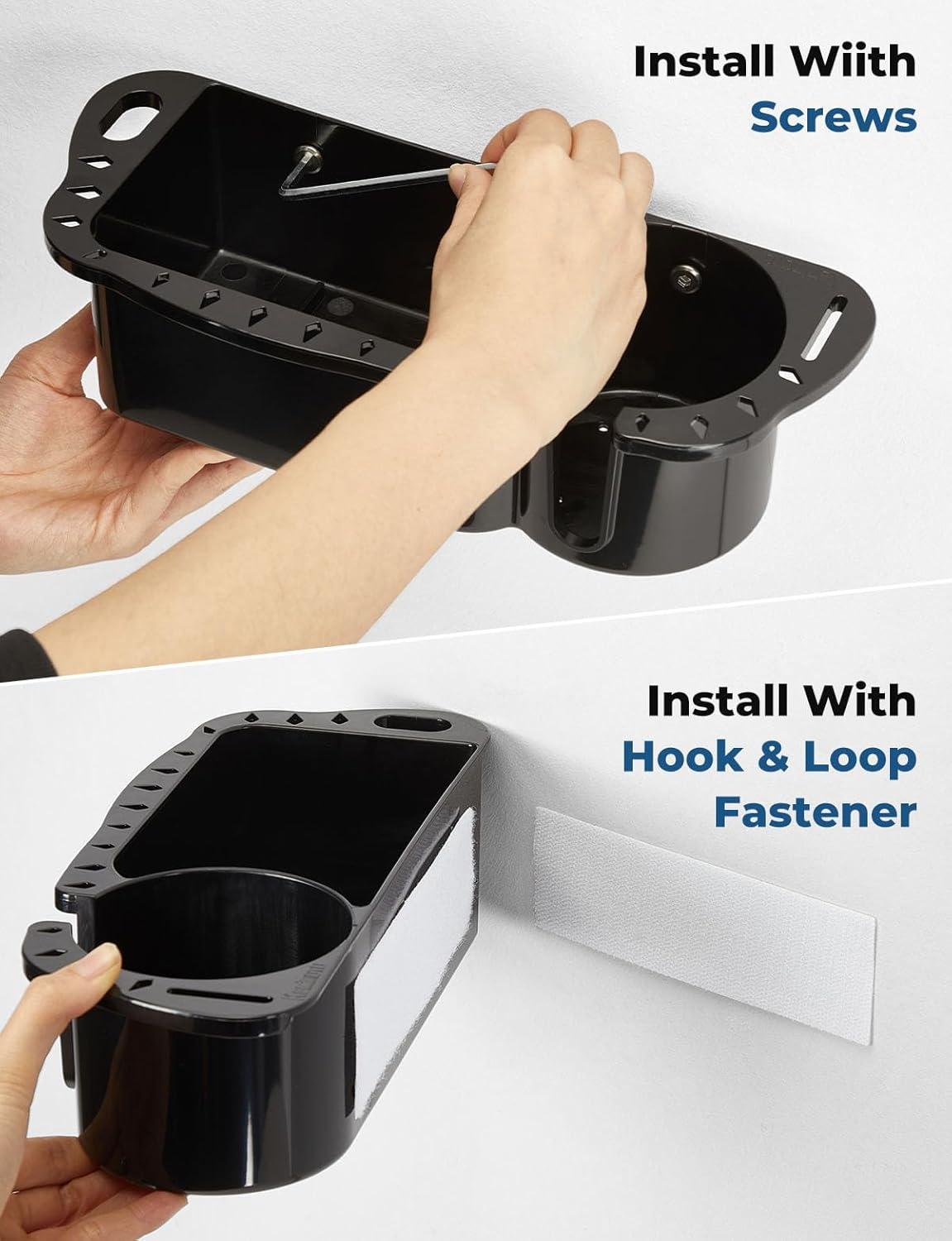 Tough & Reliable – Made of high-quality ABS, it can hang firmly by attaching with screws. Unlike other suction cups that lose suction quickly, this boat fishing caddy is built to last. You can also use a hook & loop tape to install it temporarily.