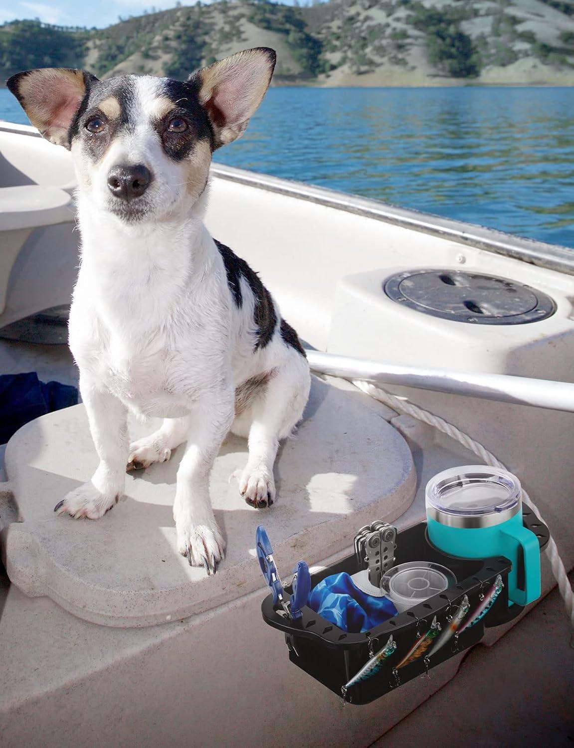 This boat organizer can hold your drinks, gadgets, pliers, knives, and more. The holes around the edge are great for hanging fishing lures. Whatever items you need, it always holds them in place and keeps them tidy