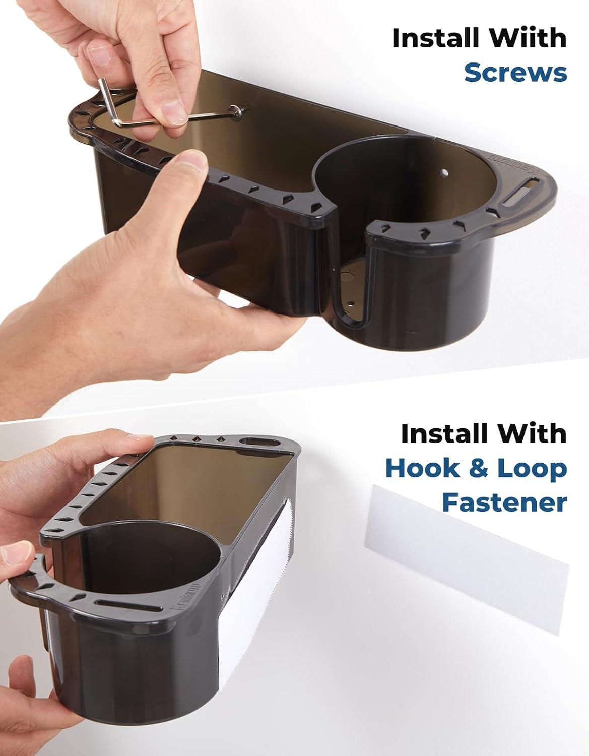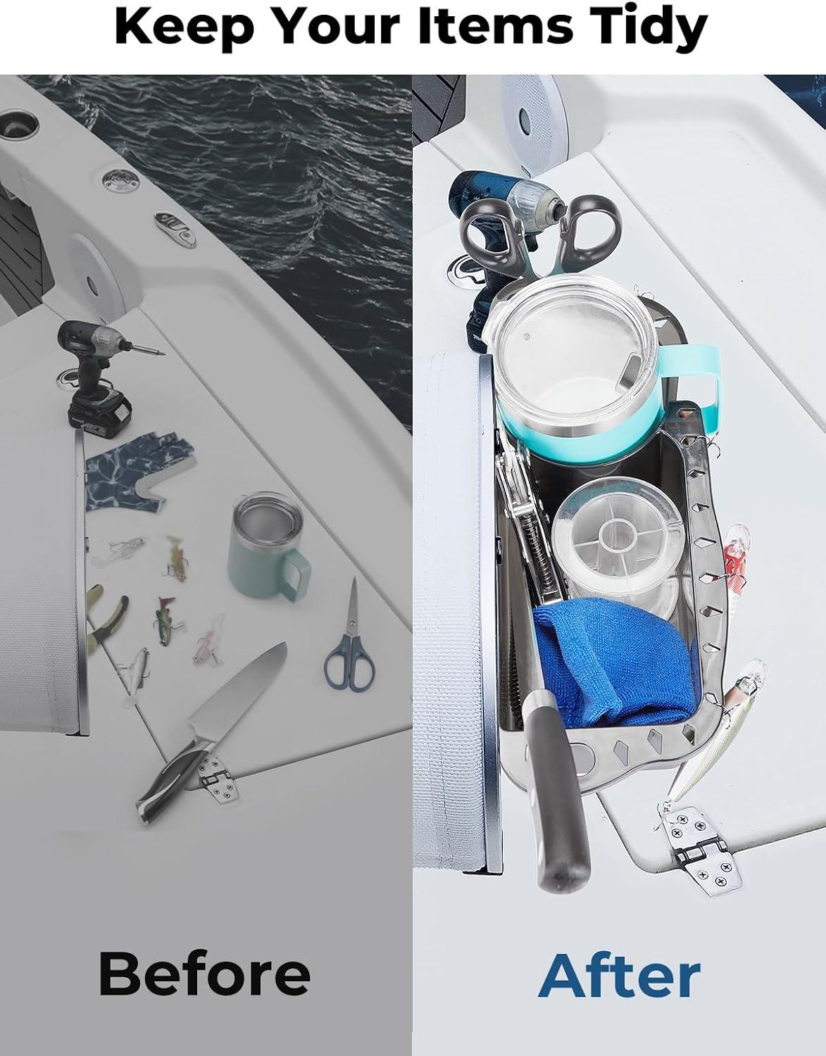 Tough & Reliable – Made of high-quality ABS, it can hang firmly by attaching with screws. Unlike other suction cups that lose suction quickly, this boat fishing caddy is built to last. You can also use a hook & loop tape to install it temporarily.