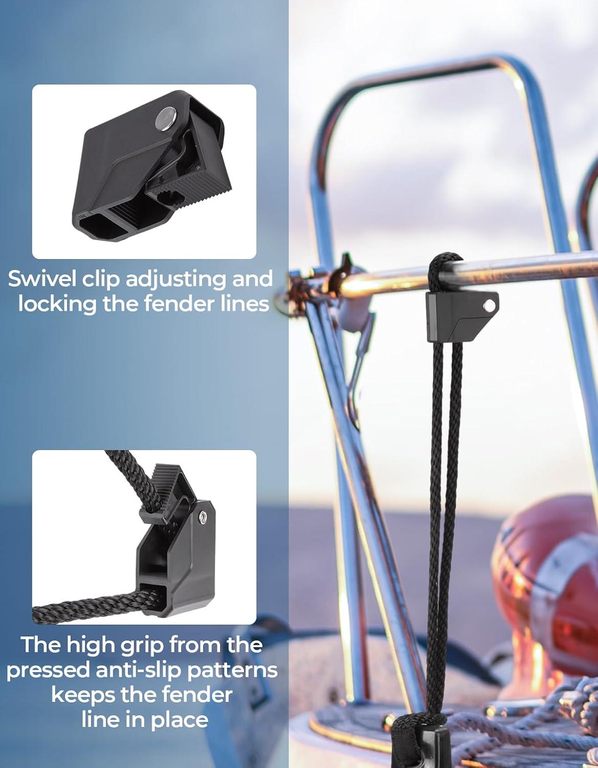 Innovative Gravity Design: Boat fender clips feature a cutting-edge gravity design, allowing mariners to effortlessly adjust the boat bumper's position and height for quick and convenient docking.