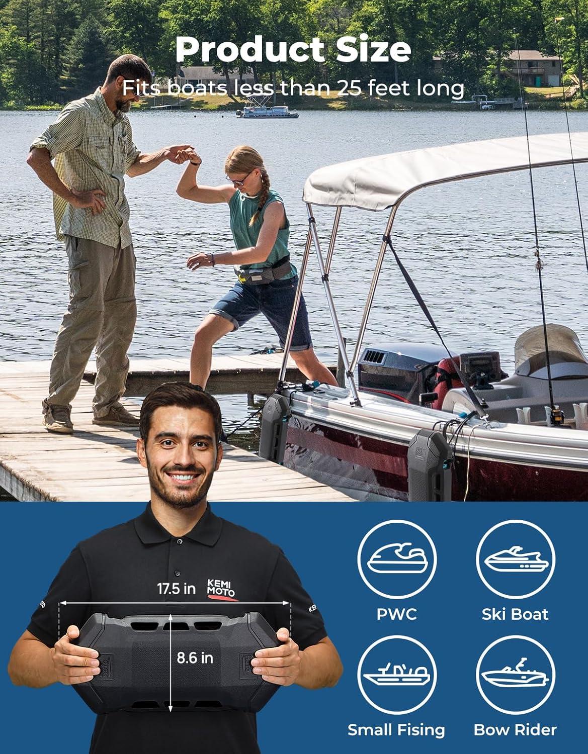 Size Choosing: kemimoto boat fender for docking size: 17in (length) * 8in (dia). Intended for use with boats 15-25 feet long, we suggest you use one for every 10 feet of boat length, for boats under 30 feet, deploy no less than three fenders.