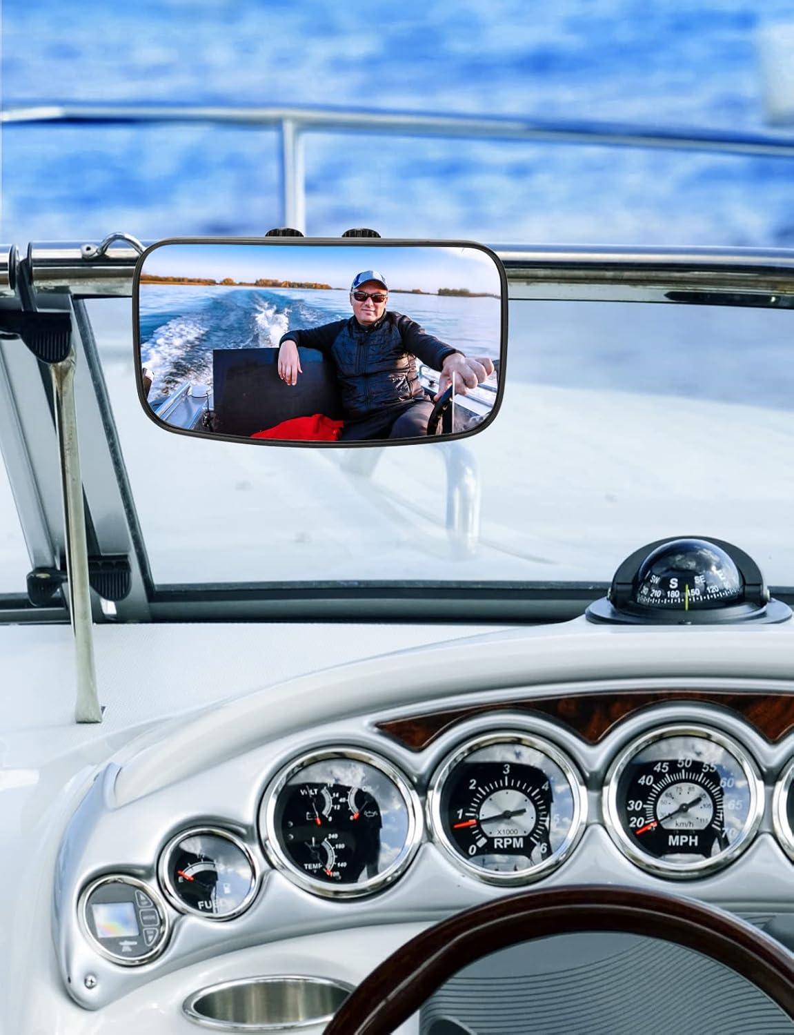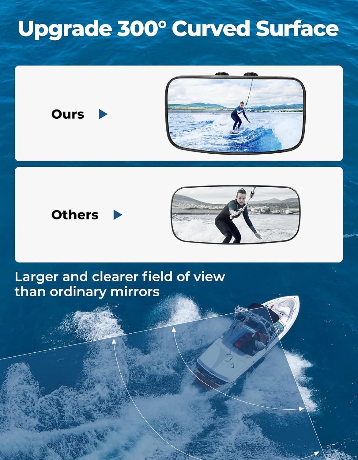 300-Degree Curved Ultra-Wide Lens: Experience unparalleled visibility with our upgraded ski boat rearview mirror, featuring a 300-degree curved wide-angle lens for a clear, unobstructed view of surrounding waters and other boats