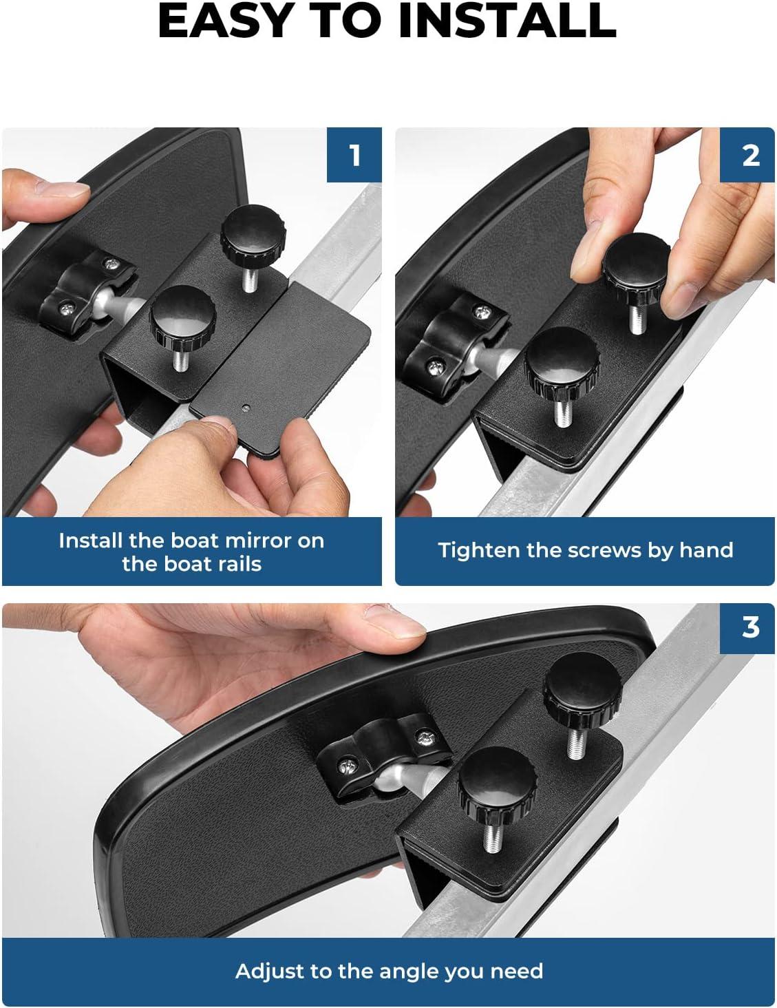 Hassle-Free Installation: Easily install our boat rearview mirror with the 2 thumbscrews provided, attaching and removing as needed without any tools