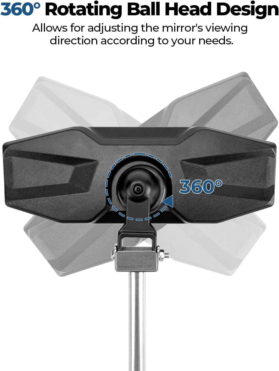 360° Adjustable At Will: This enlarged boat rearview mirror has a unique 360° rotatable ball head structure and gear design, allowing you to adjust the viewing direction of the mirror surface and the tilt angle of the bracket according to your needs.