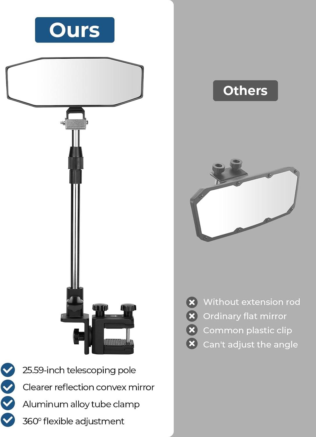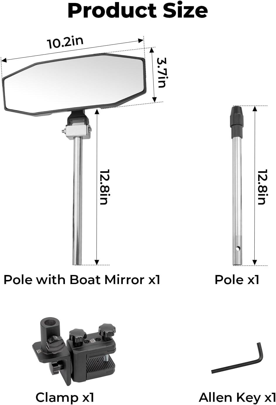 25.59-Inch Stainless Steel Extension Pole: Compared with the limited view of the mirror directly clamped on the windshield, the mirror with a support rod allows you to see the surrounding waters and other boats clearly and unobstructed, providing an unparalleled viewing experience.