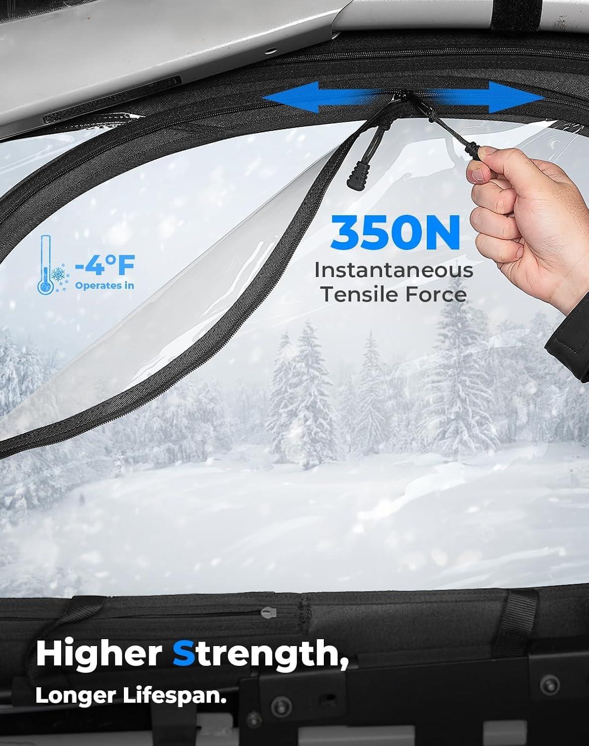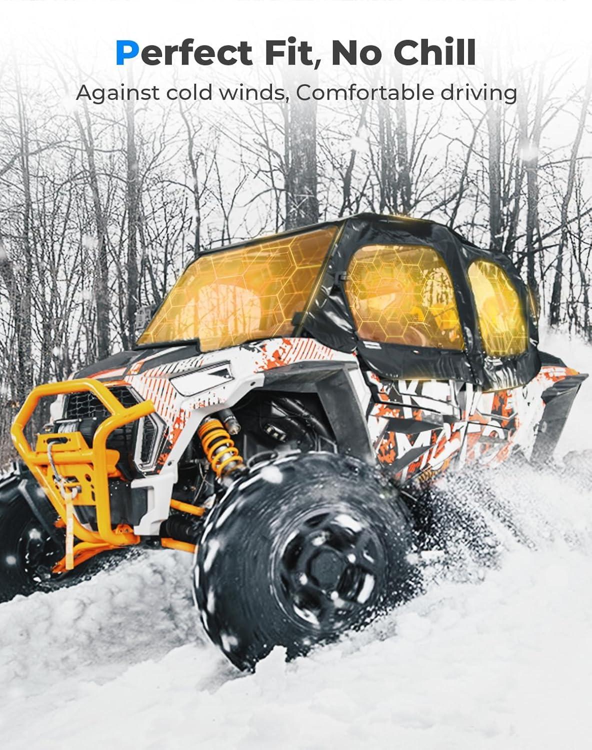 Perfect Fit: The KEMIMOTO UTV cab enclosure offers excellent insulation against cold wind for a warm winter drive. Designed for perfect compatibility with 2014-2023 Polaris RZR XP 4 1000 / 2016-2021 Polaris RZR XP4 Turbo, it integrates seamlessly with the roof and partial windshields