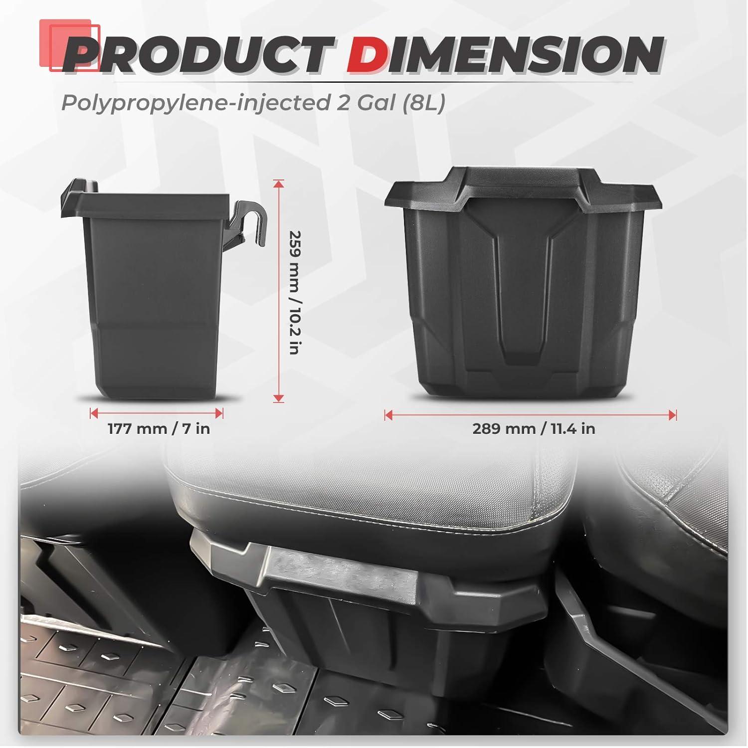 Capacity: Kemimoto utv center underseat storage bin will polypropylene-injected 2 Gal (8L), which is not a sealed storage bin but big enough to hold something during riding to avoid dropping away