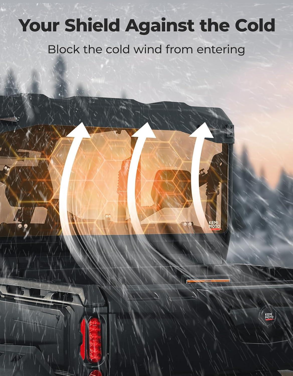 Full Protection: This rear windscreen accessory protects riders from the wind and flying debris such as dust and rocks that may come from behind. The back window effectively prevents wind from blowing in from the rear, especially during winter, reducing cold drafts and the risk of catching a cold