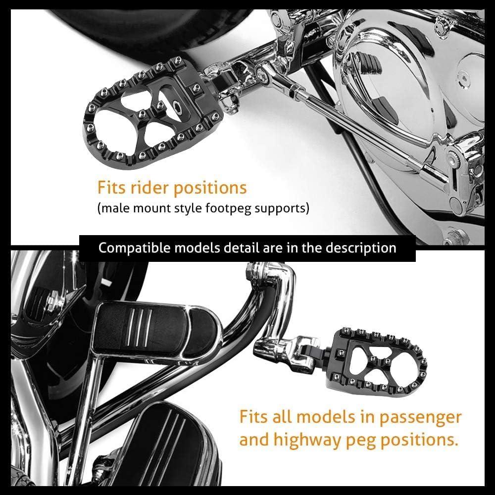 Fitment: Kemimoto motorcycle foot pegs compatible with Dyna 1993-2017; Fatboy 1990-2017; Iron 883 2009-2017; Sportster 883 (NOT fit 2013-2014 XL1200C/V/X and twin cam models) Fits models in passenger and highway peg positions