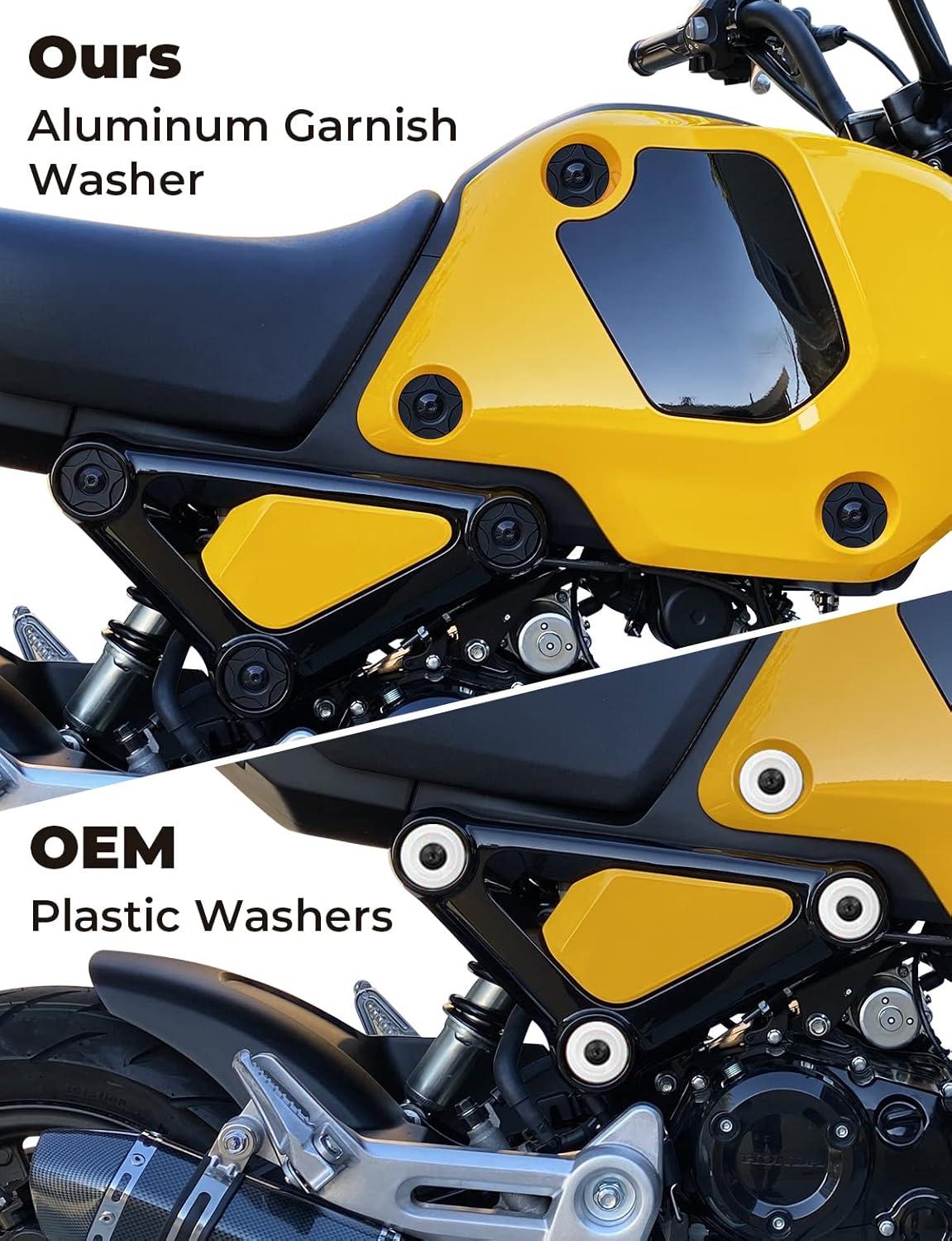 Fitment – The colored verge washers are compatible with 2022 2023 2024 Grom motorcycles and fit with OEM.