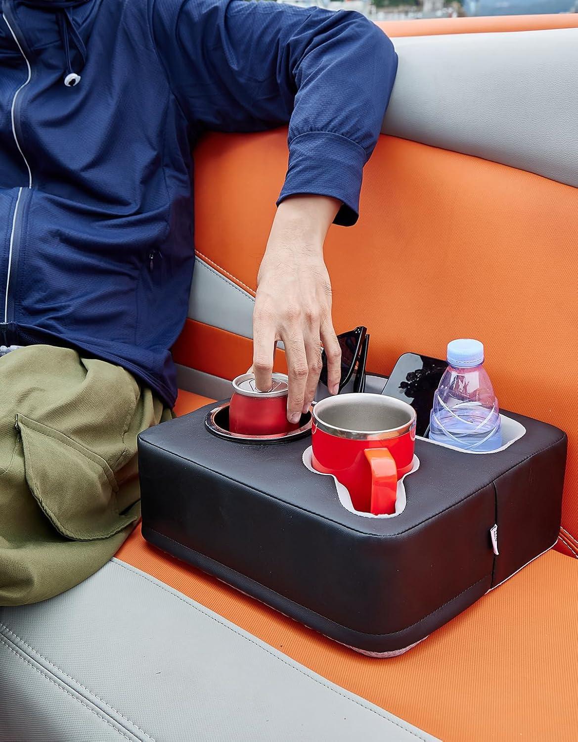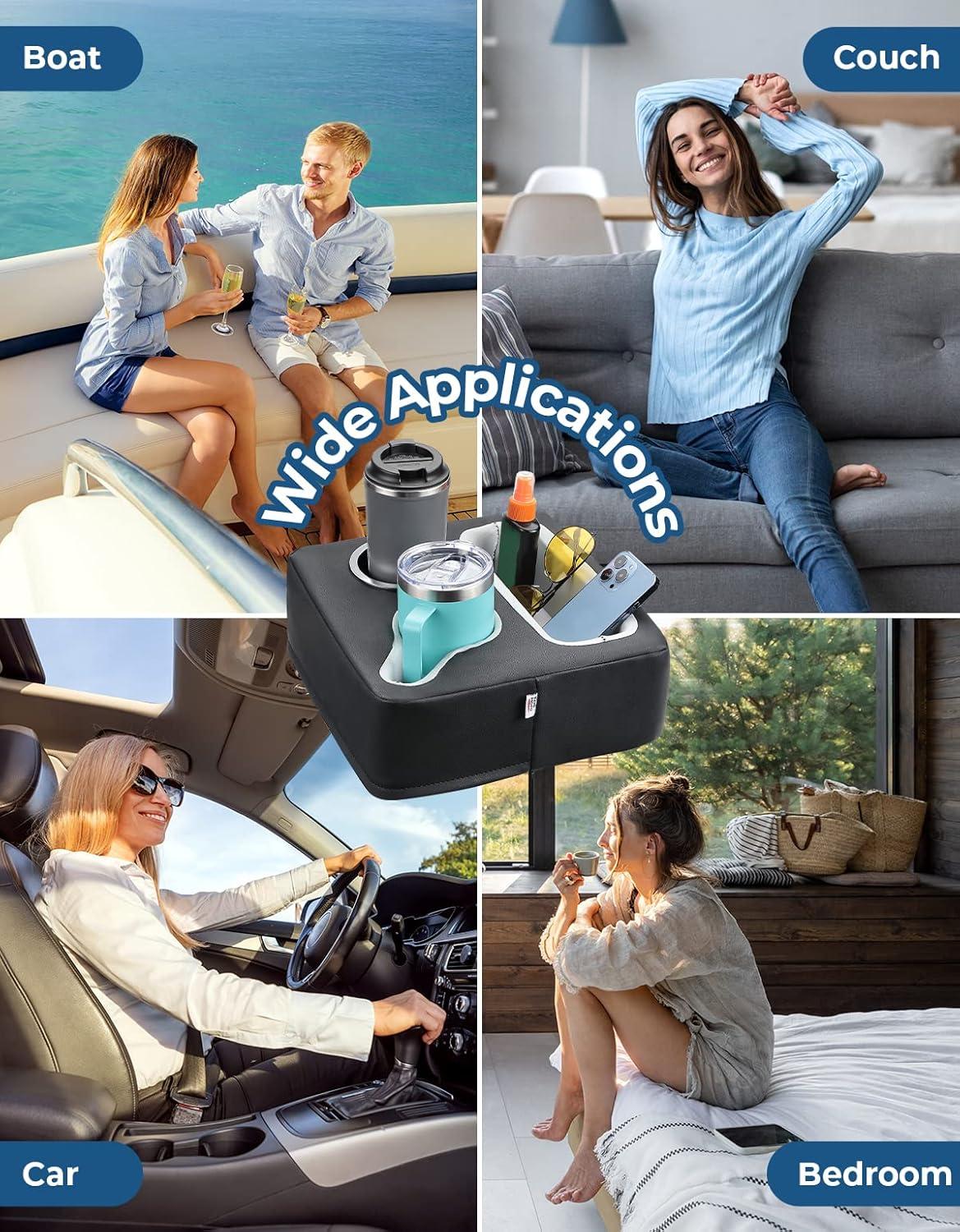 【Versatile】These couch cup holder tray are incredibly versatile, fitting perfectly on various types of couches, beds, and even in the backseat of cars like RVs, SUVs, and classic cars without storage space. You can easily attach them to the bulkhead, under your console, or on the dash, ensuring that your essentials are always within arm's reach.