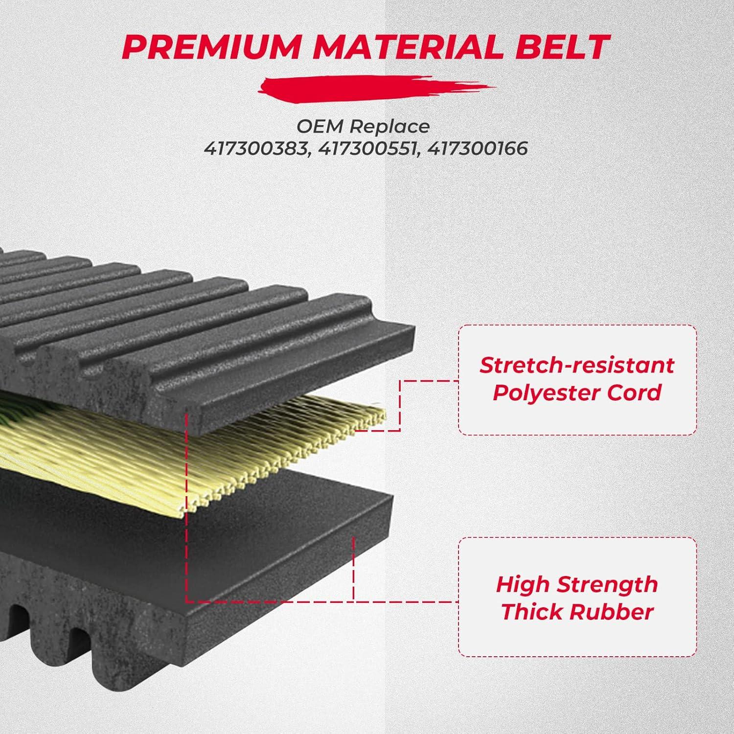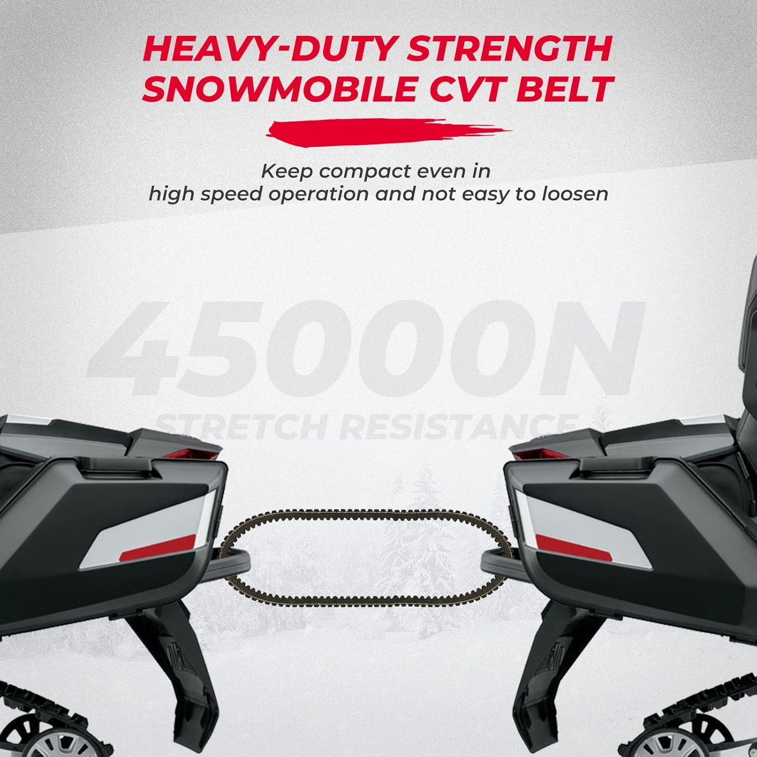 Flexibility: KEMIMOTO CVT drive belt snowmobile is designed with double-sided teeth to match an advanced trapezoidal top-notch and rounded cog design to maximize heat dissipation and flexibility. 417300166 heavy-duty CVT belt designed for higher transfer power through your clutch and handling high torque pulls without breaking