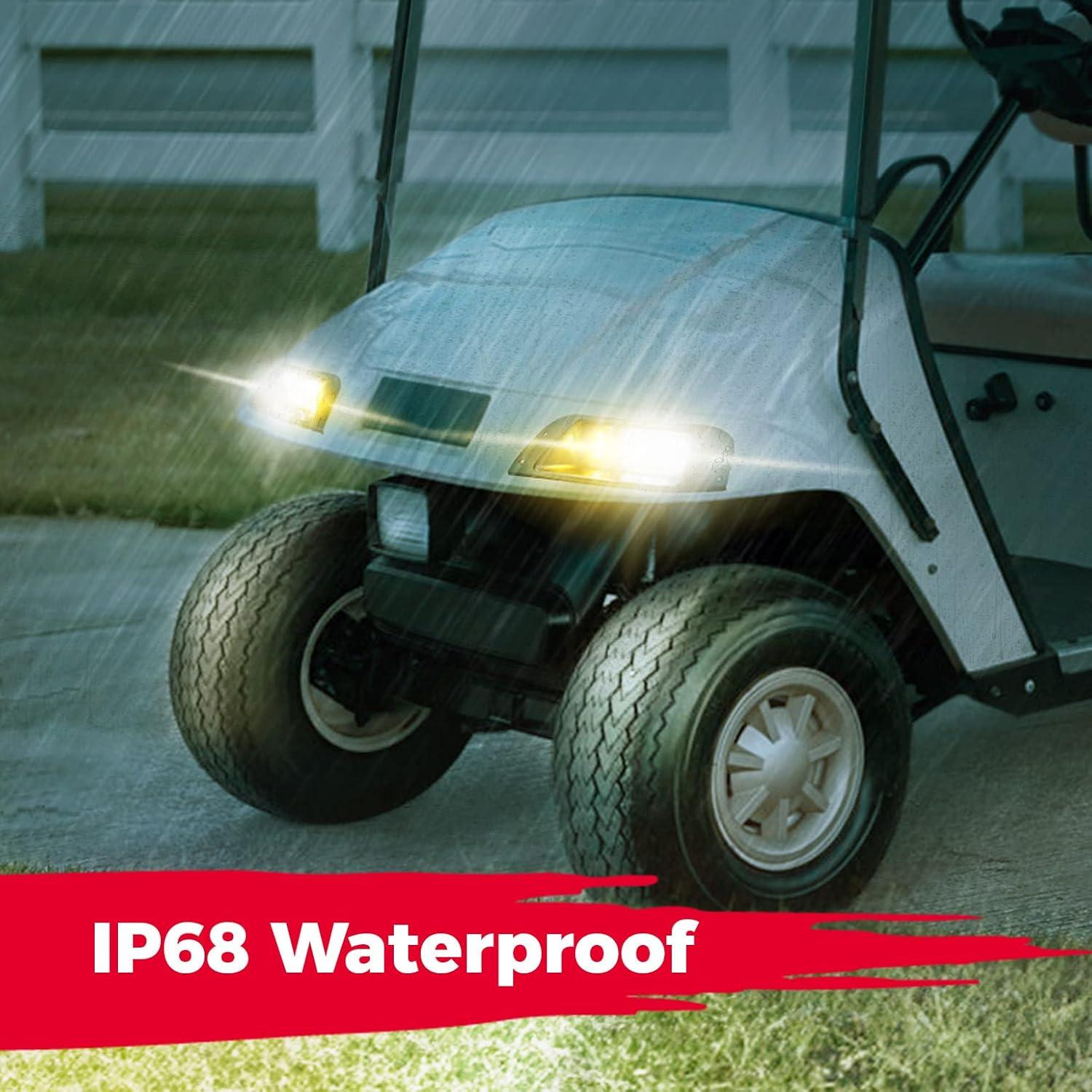 Upgraded Street Legal Light Kit: The golf light kits are waterproof and dustproof, which not only provides better lighting for getting around with your golf cart every day but also provides the function of brake lights and signal lights