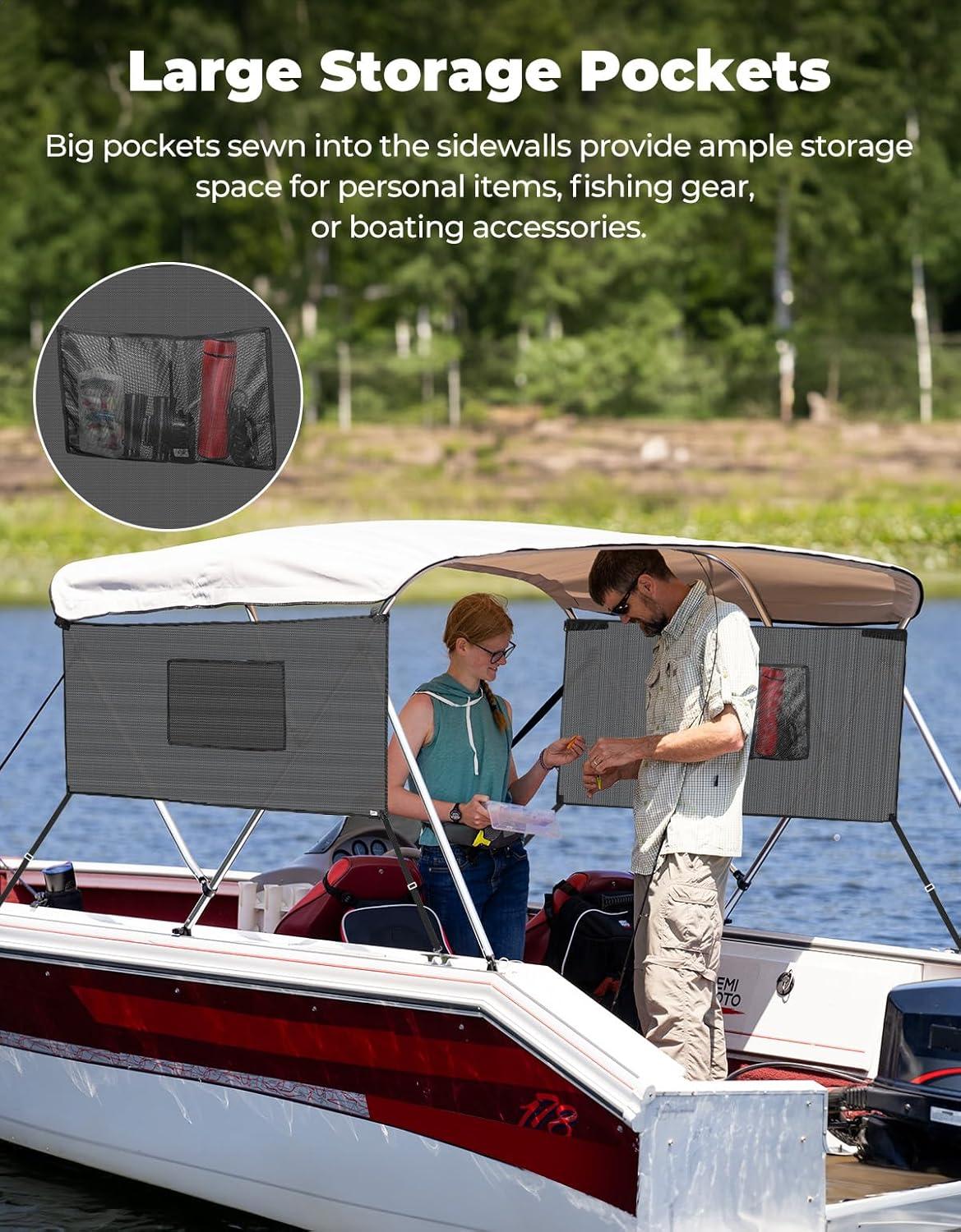 Breathable Ventilation: Mesh design allows for superior airflow, keeping the area cool and well-ventilated. This breathable feature helps reduce heat buildup under the mesh sidewalls, making your boating experience more comfortable. Whether you're relaxing in the shade or actively engaging in water sports, the enhanced ventilation ensures a pleasant environment at all times.