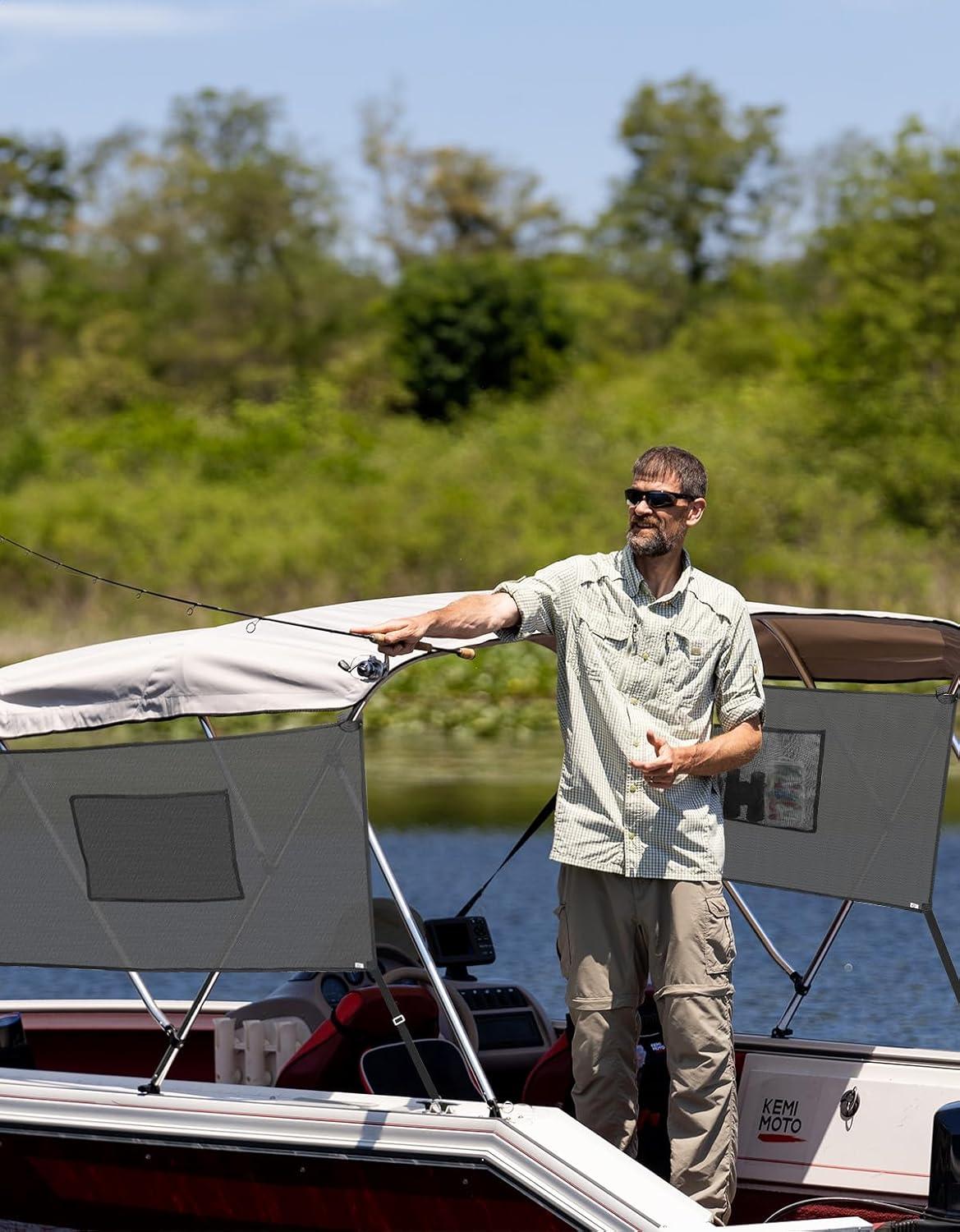 Easy Attachment: Quick installation with top hook-and-loop fasteners and secure bottom hooks ensures that setting up your cover is hassle-free. The robust attachment system ensures that the mesh sidewalls stay firmly in place, even during windy conditions or high-speed boating. Spend less time setting up and more time enjoying your day on the water.