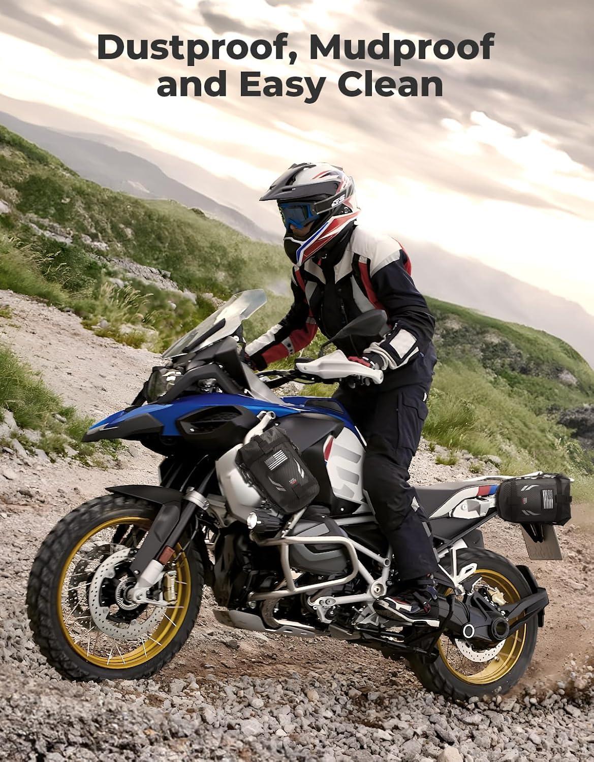 500D PVC Waterproof Material: Motorcycle Fender Bag is Made from Waterproof and Tear-Resistant PVC-Coated Polyester, With Seamlessly Sealed Seams for Total Rain Protection. Simply Rinse with Water to Easily Clean the Dirt and Mud off the Fender Bag