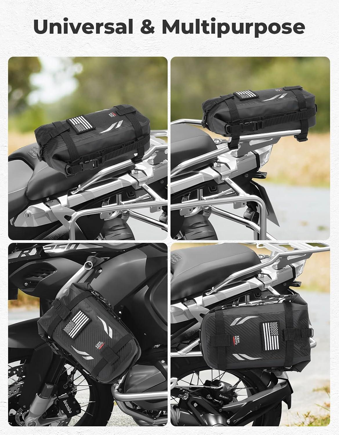Multiple Uses: Tool Bag Can Be Mounted on Various Motorcycle Parts like the Tail Frame, Crossbeam, Or Side Frame. It Also Fits Bicycles, Electric Bikes, And Atvs, Functioning as a Crash Bar Bag, Tail Bag, Side Frame Bag, Or Rear Rack Bag