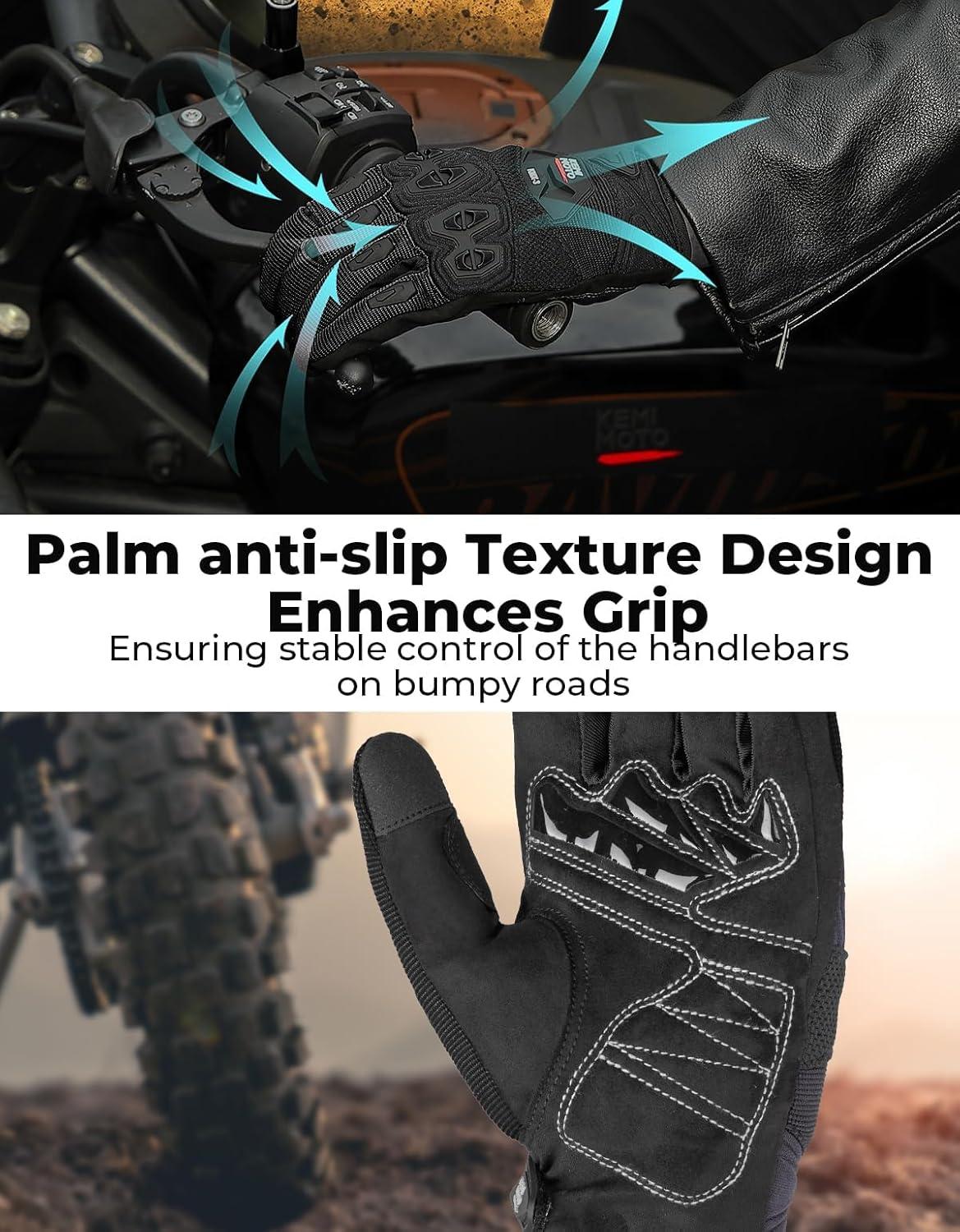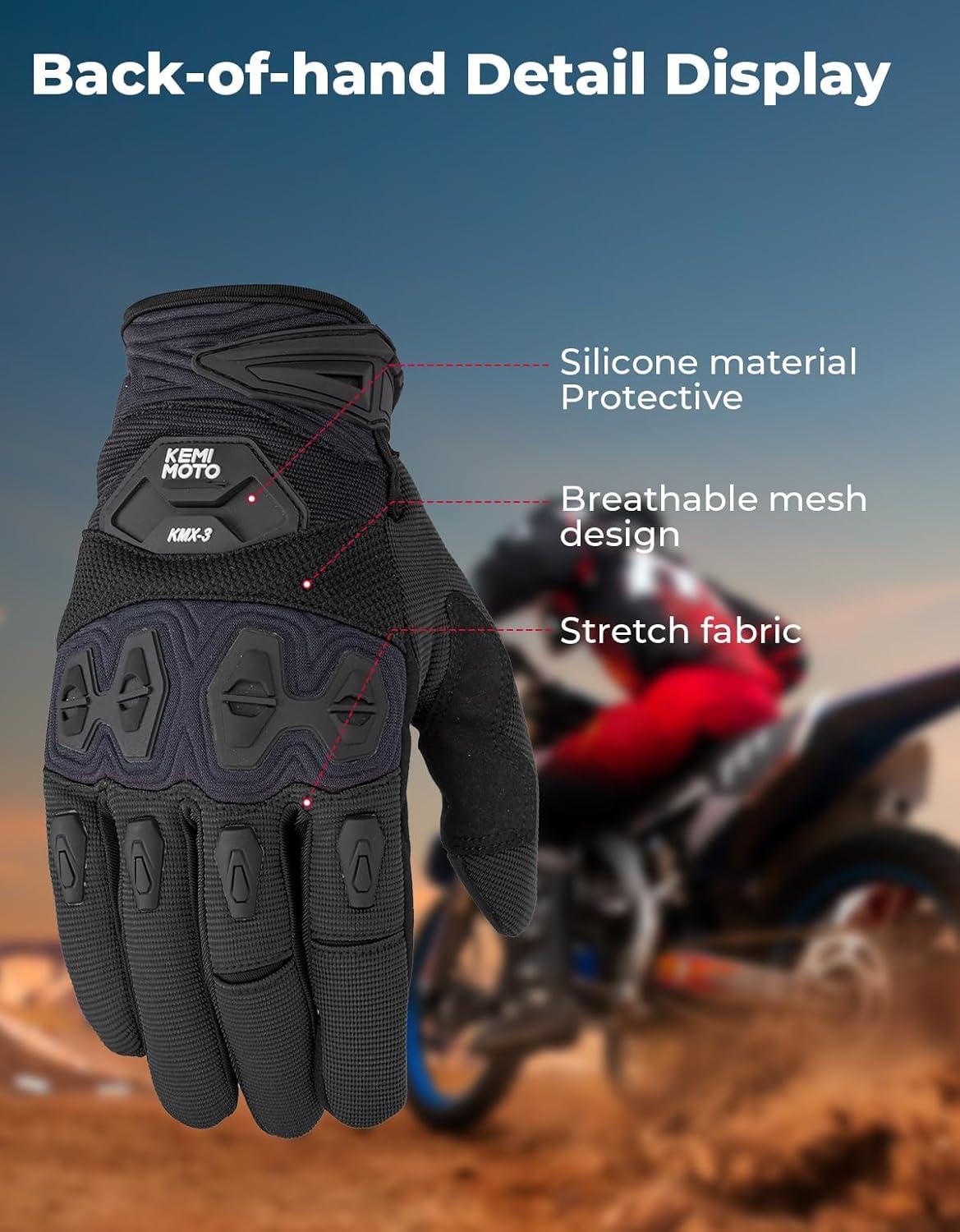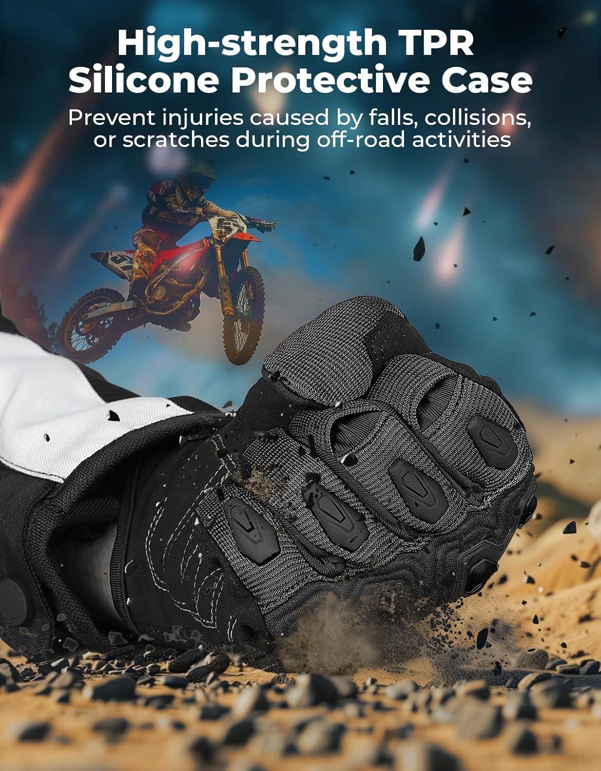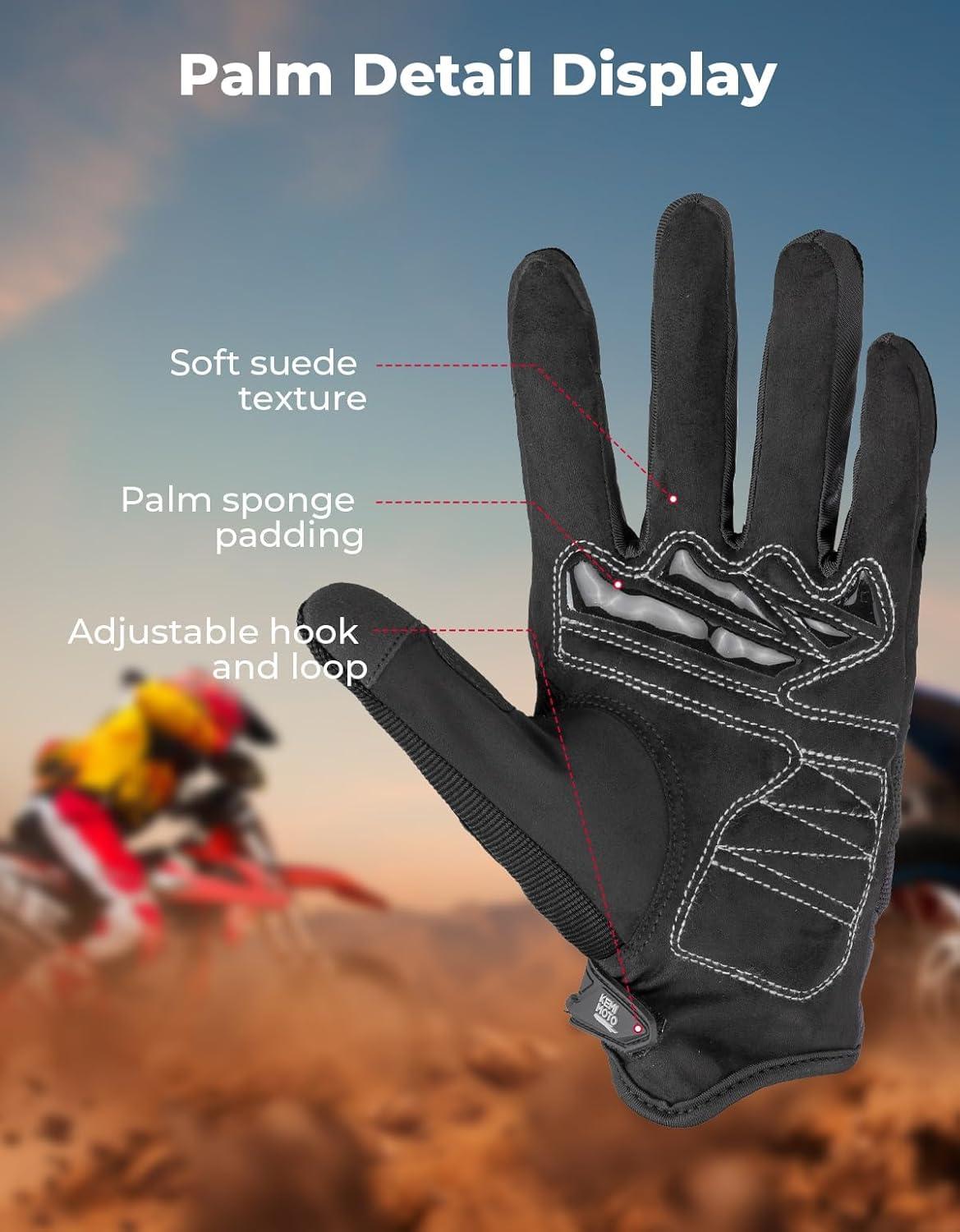 Full Protection: These dirt bike gloves will keep you protected during bicycling, climbing, motorcycling, hiking, hunting, and outdoor working. The thickened pads and wear-resistant silicone gel on the palm increase grip on motorcycle handlebars to improve driving safety.