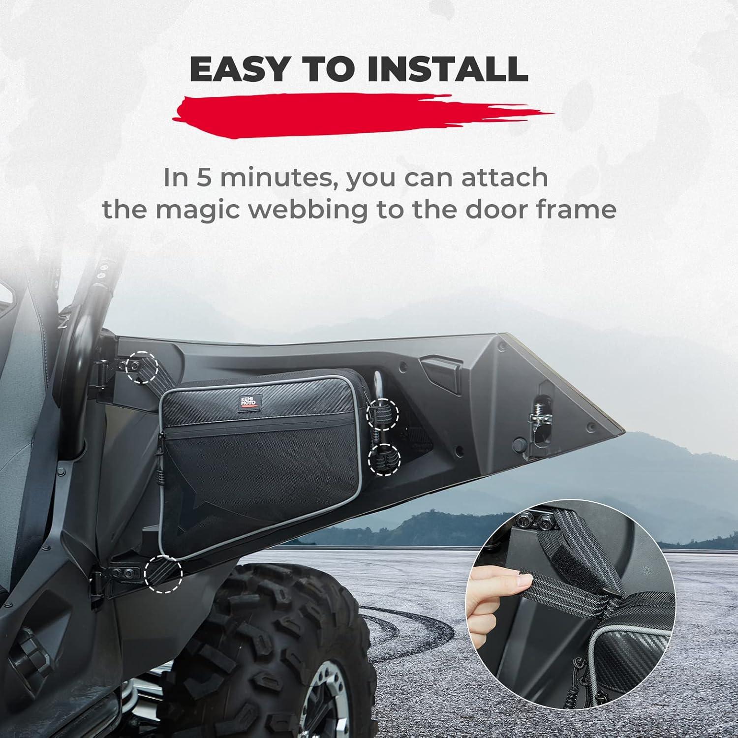 Set of Two: In 5 minutes, you can attach the magic webbing to the door frame and complete the installation. Package includes left door bag and right door bag