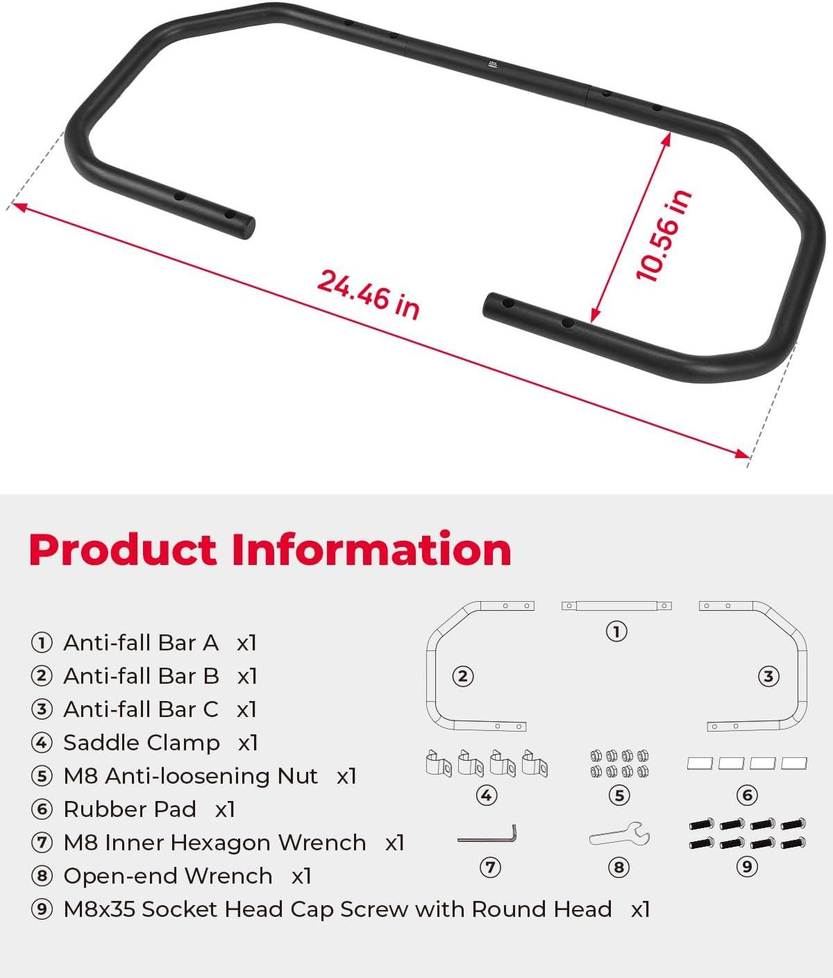High Quality: Our engine guard crash bar made of sturdy steel with matte black powder coating for durability