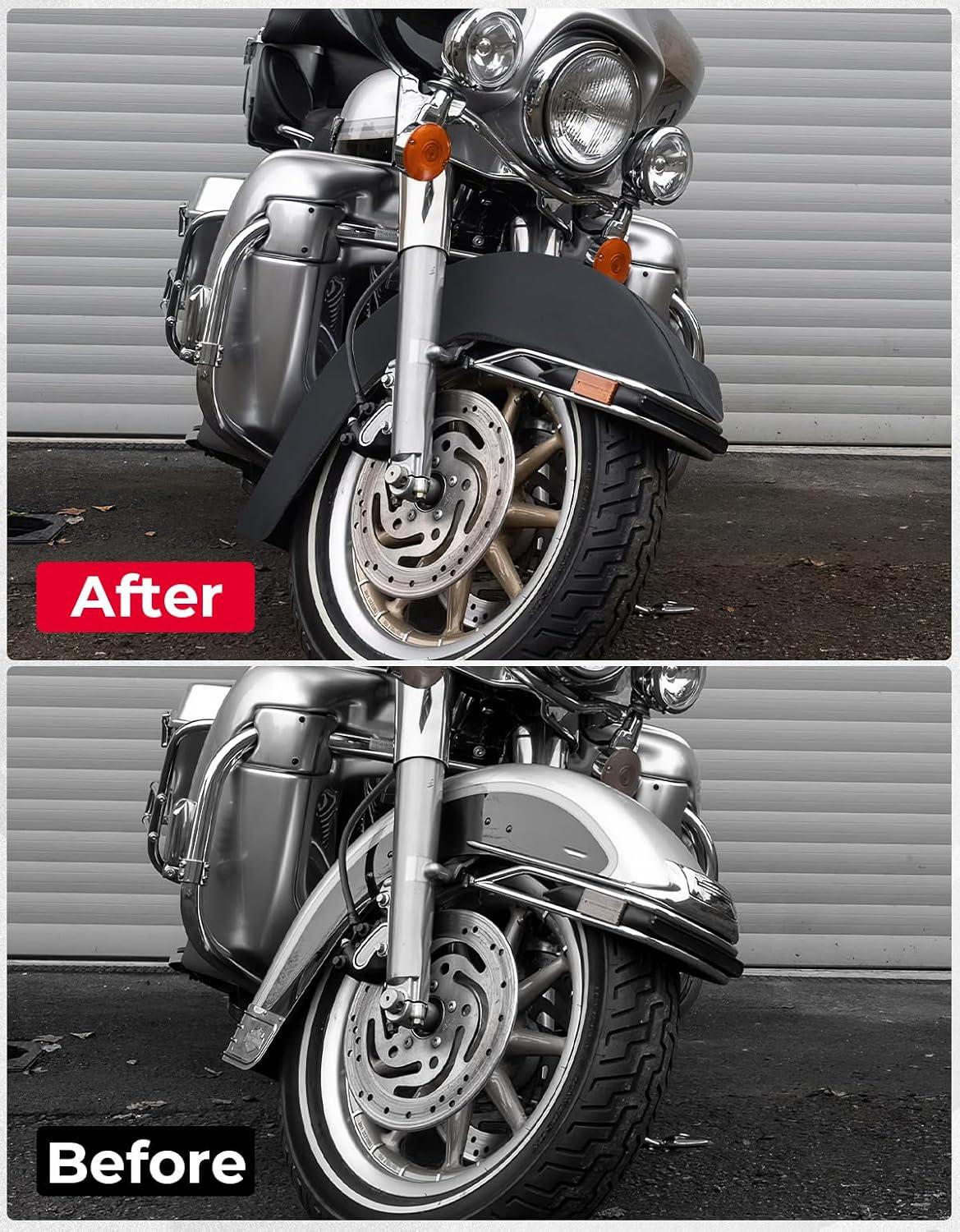 Easy Installation: The Motorcycle Large Fender Cover has soft elastic bands,quick installation within one minute and keep the cover firmly in place