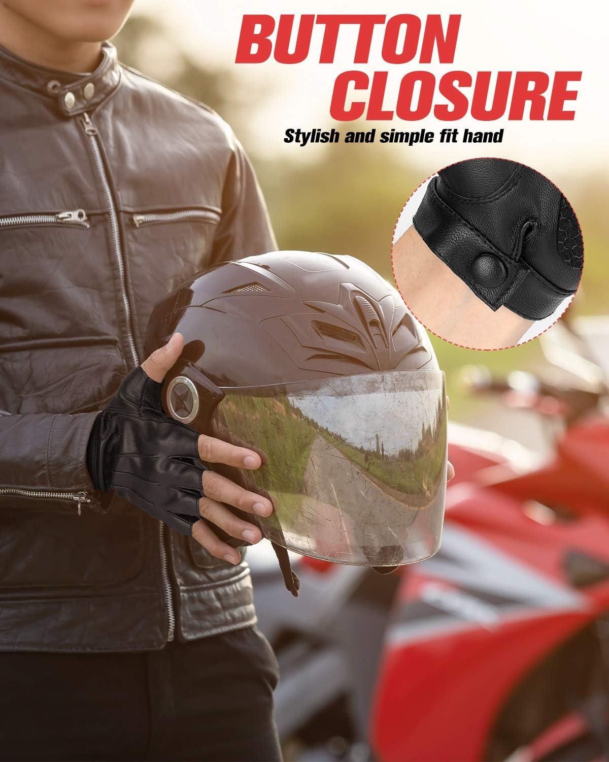 Adjustable Button: Fingerless motorcycle driving gloves with adjustable wrist buckle allow for a customized and secure fit, providing freedom and style, allowing you to ride with confidence and style