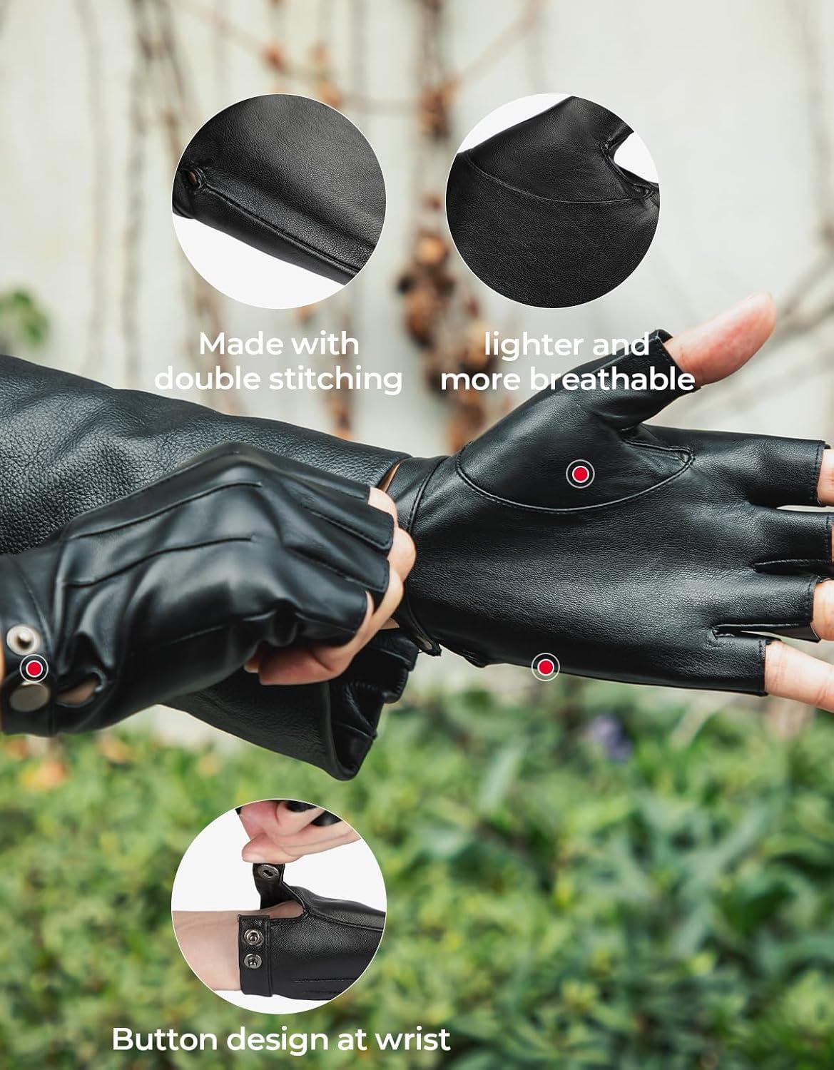 Classic & Stylish: The fingerless leather glove are double stitched with simple, stylish and fashionable appearance. It could be used in daily occasions well as special or formal occasions. Perfectly fit for indoor and outdoor activities.