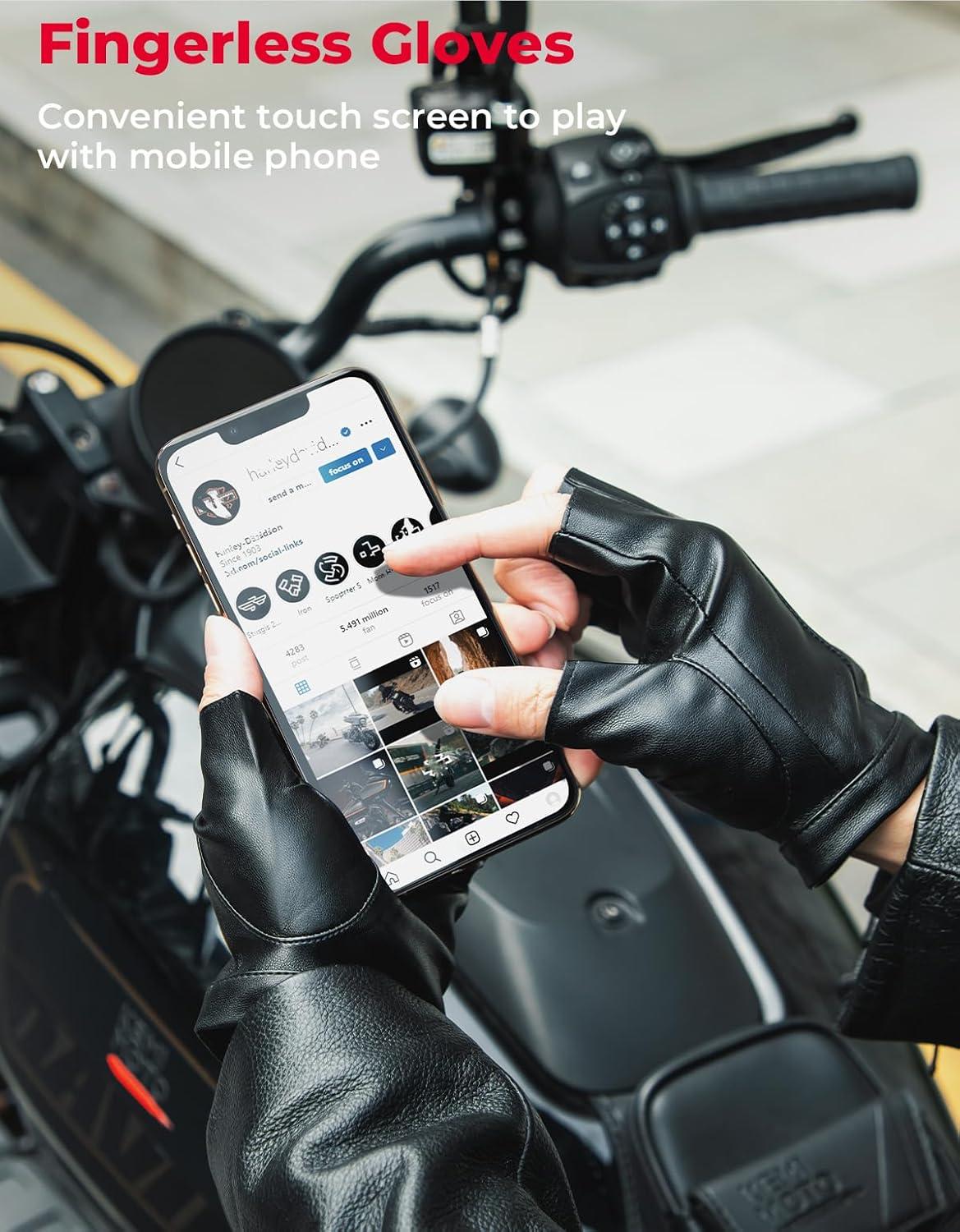 KEMIMOTO Fingerless Sheepskin Leather Motorcycle Gloves, Half Finger Riding and Driving Gloves for Men and Women(Small)