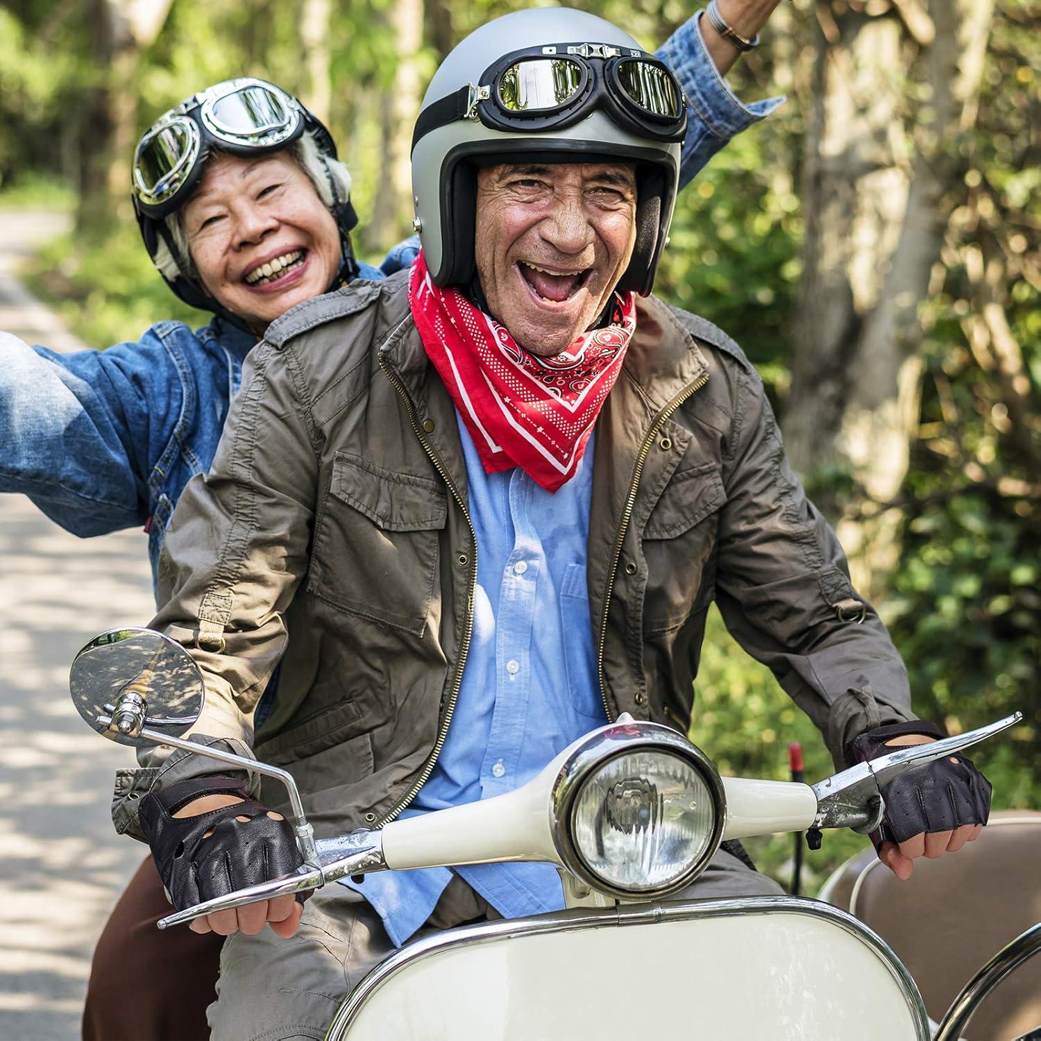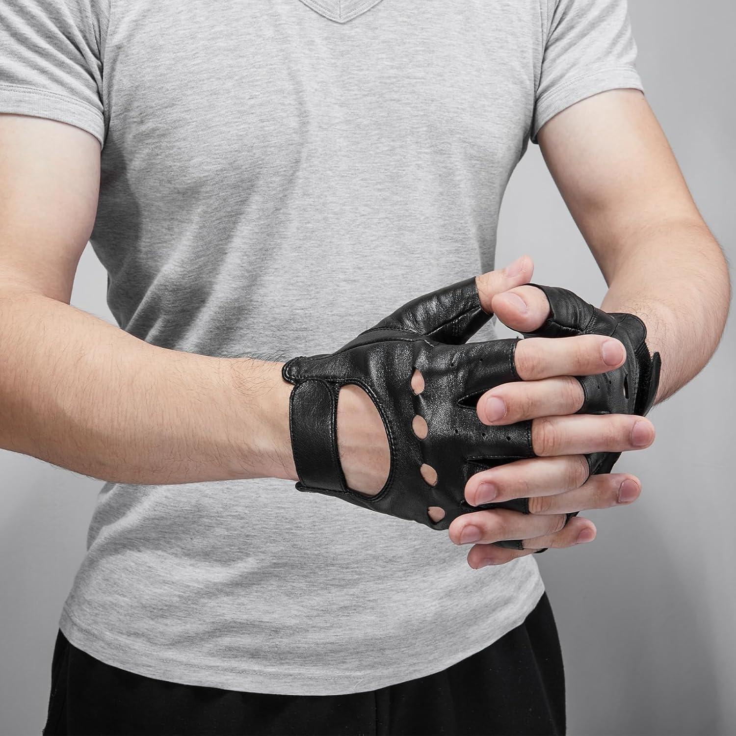 KEMIMOTO Fingerless Sheepskin Leather Motorcycle Gloves, Half Finger Riding and Driving Gloves for Men and Women(Large)