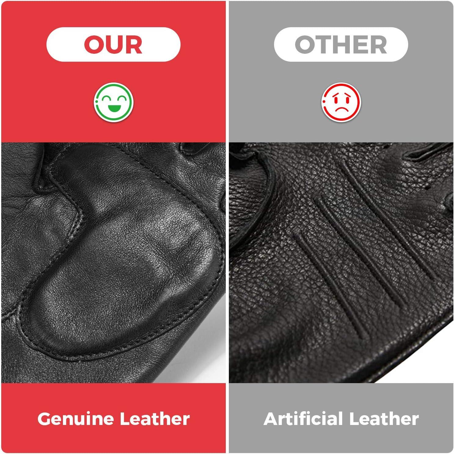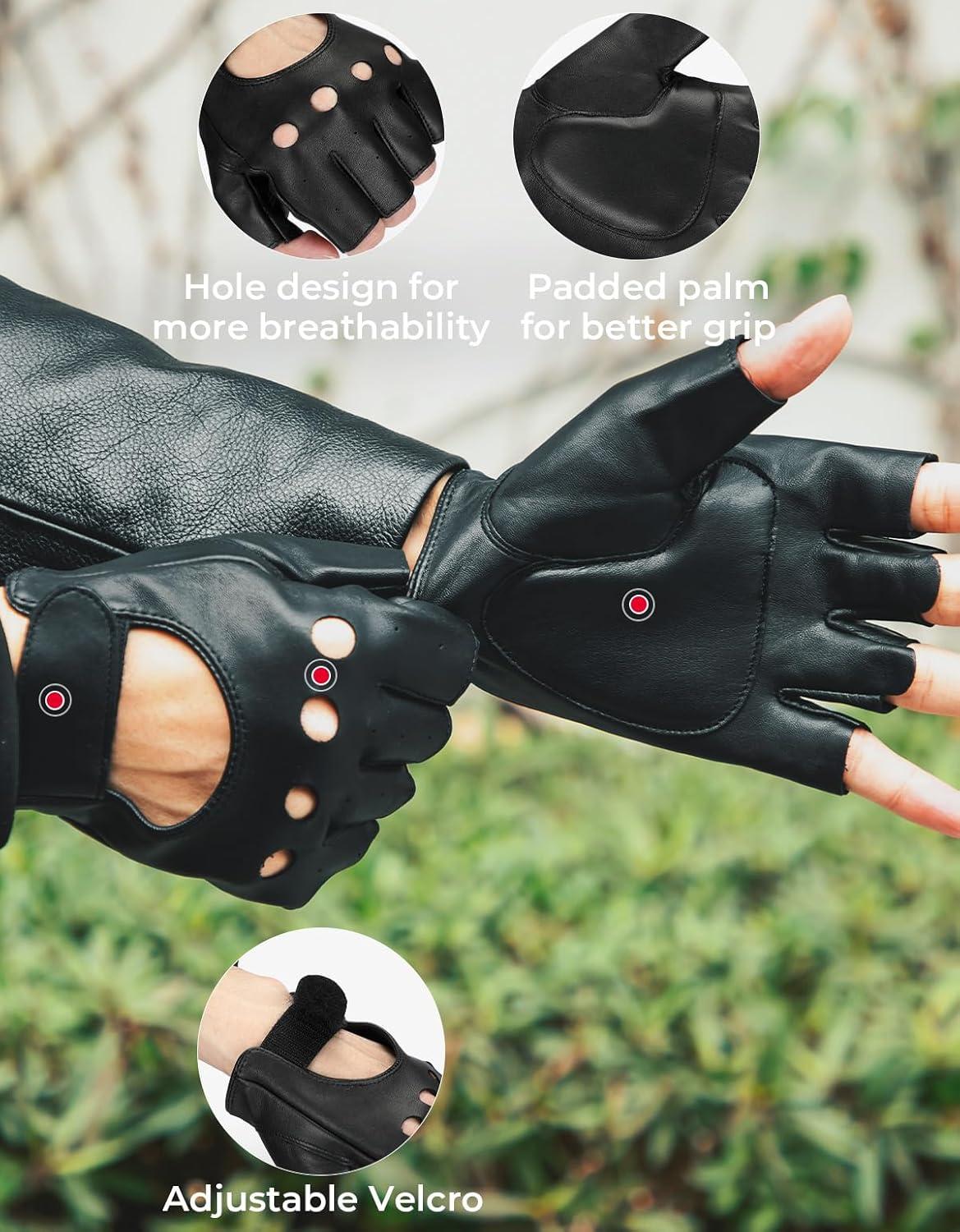 Fingerless Design: Fingerless gloves are helpful to touch the screen of your phone. Besides, they are made from premium leather, so the leather won't peel and stain your hands