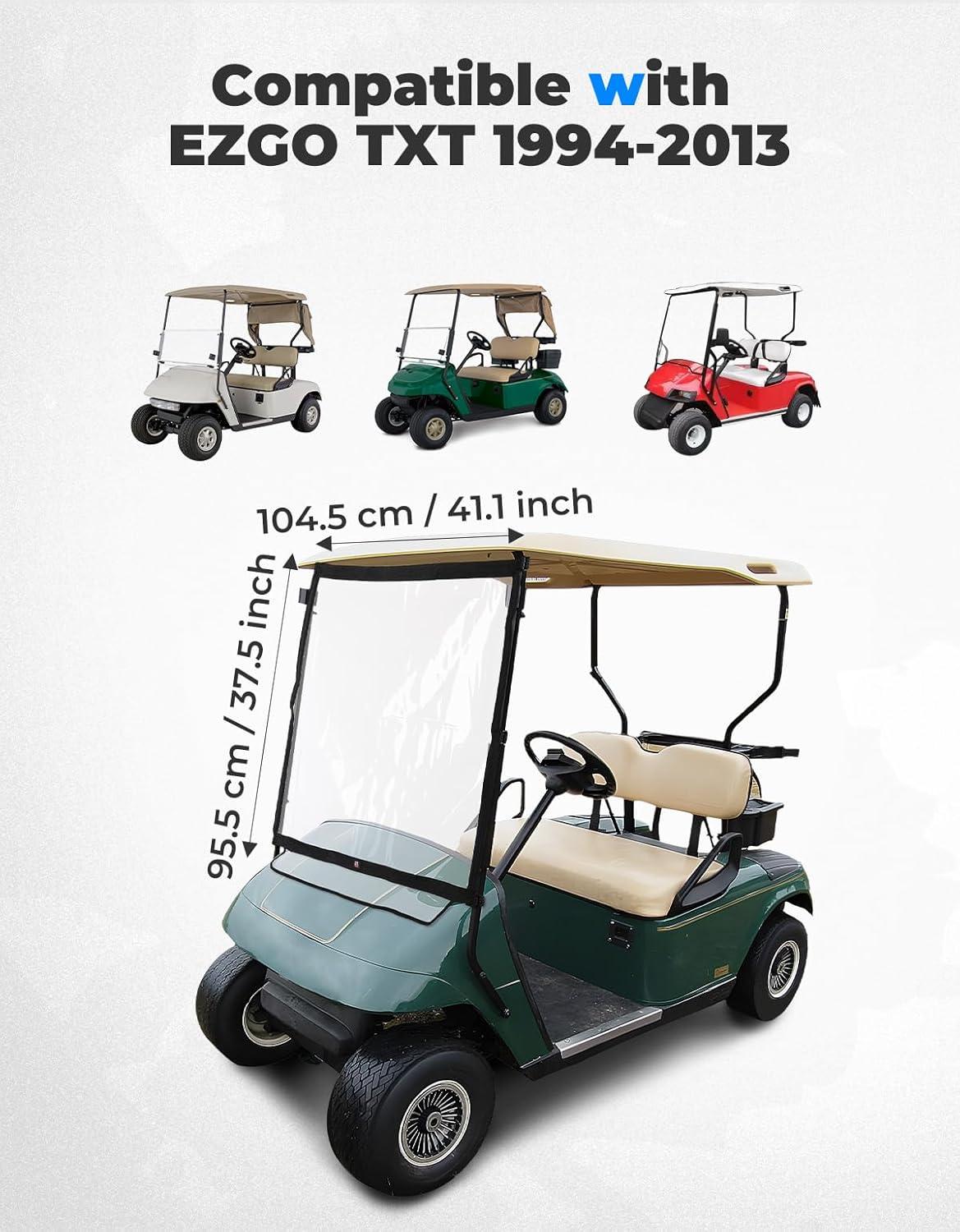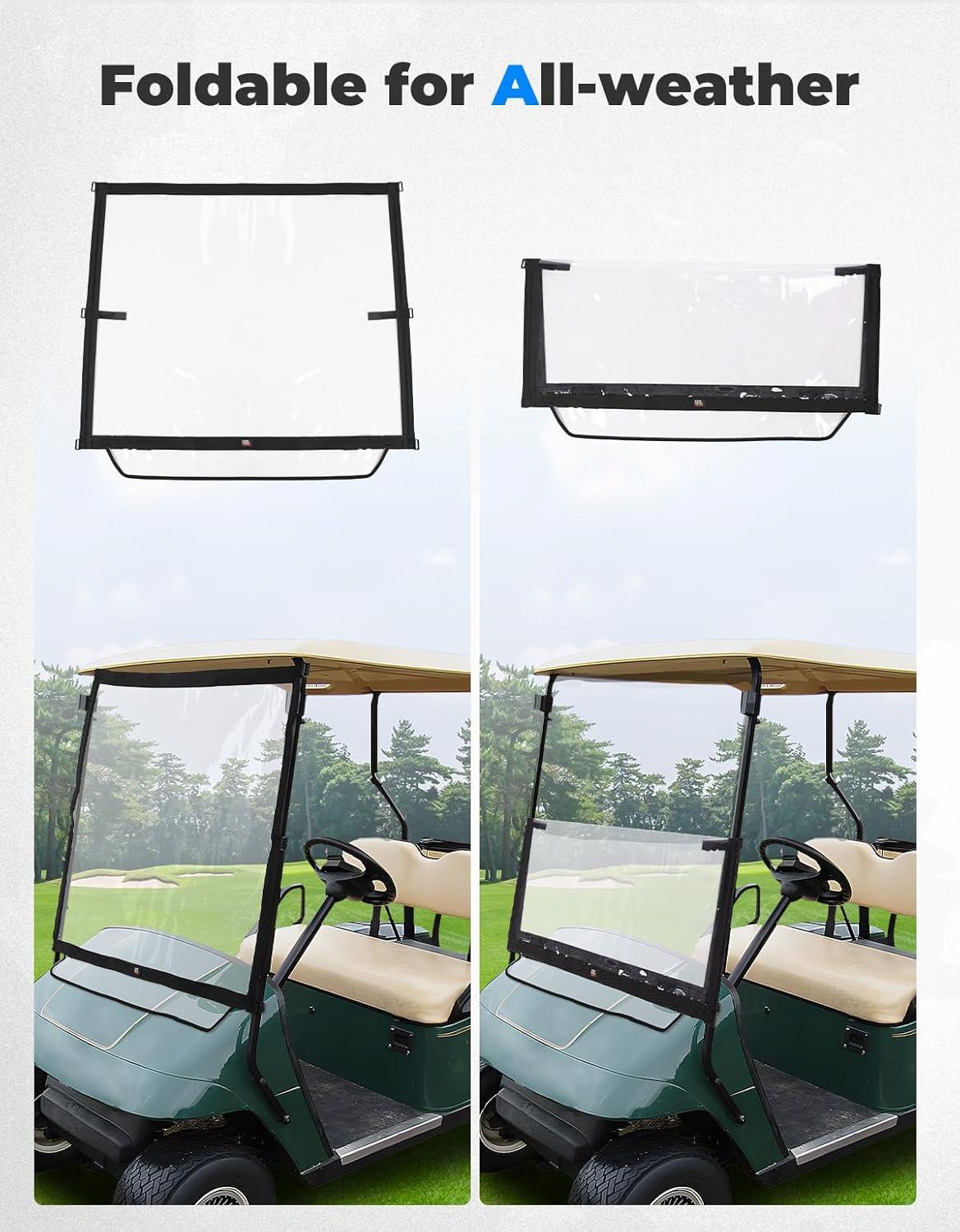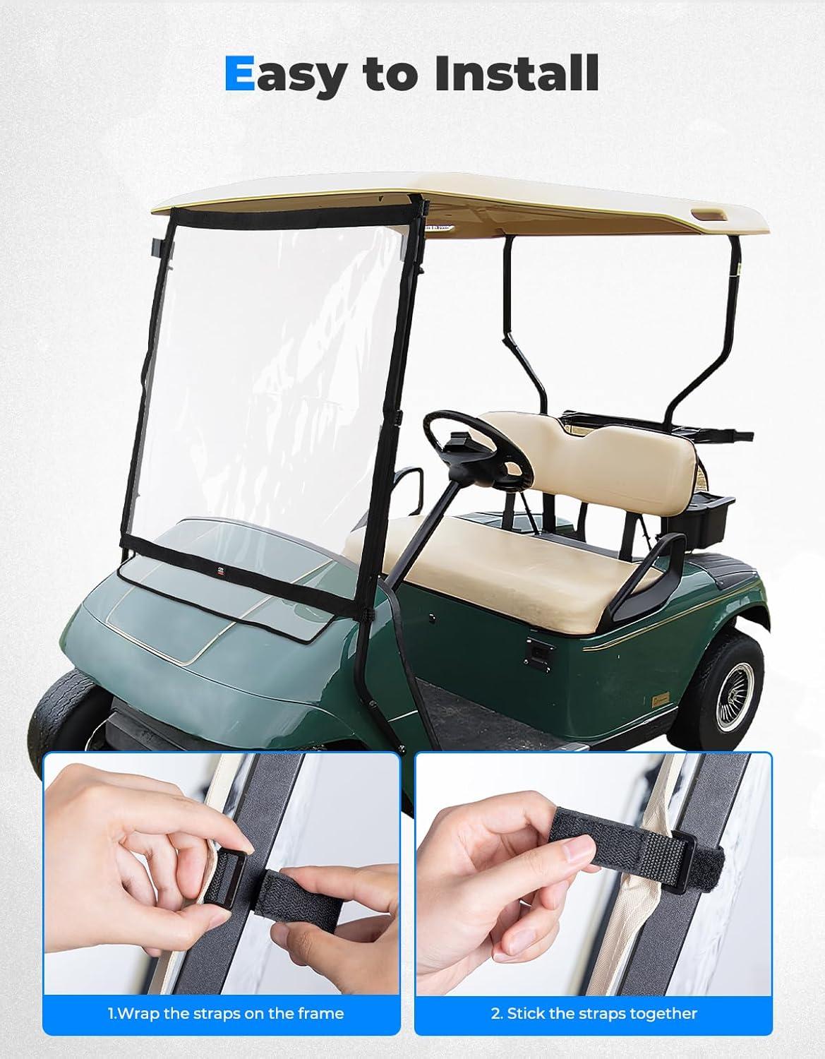 Clear Vision: The heavy-duty transparent ethylene-based windshield is designed to resist wrinkles and tears, ensuring clear vision while driving. It effectively prevents glare and enhances safety on the golf course