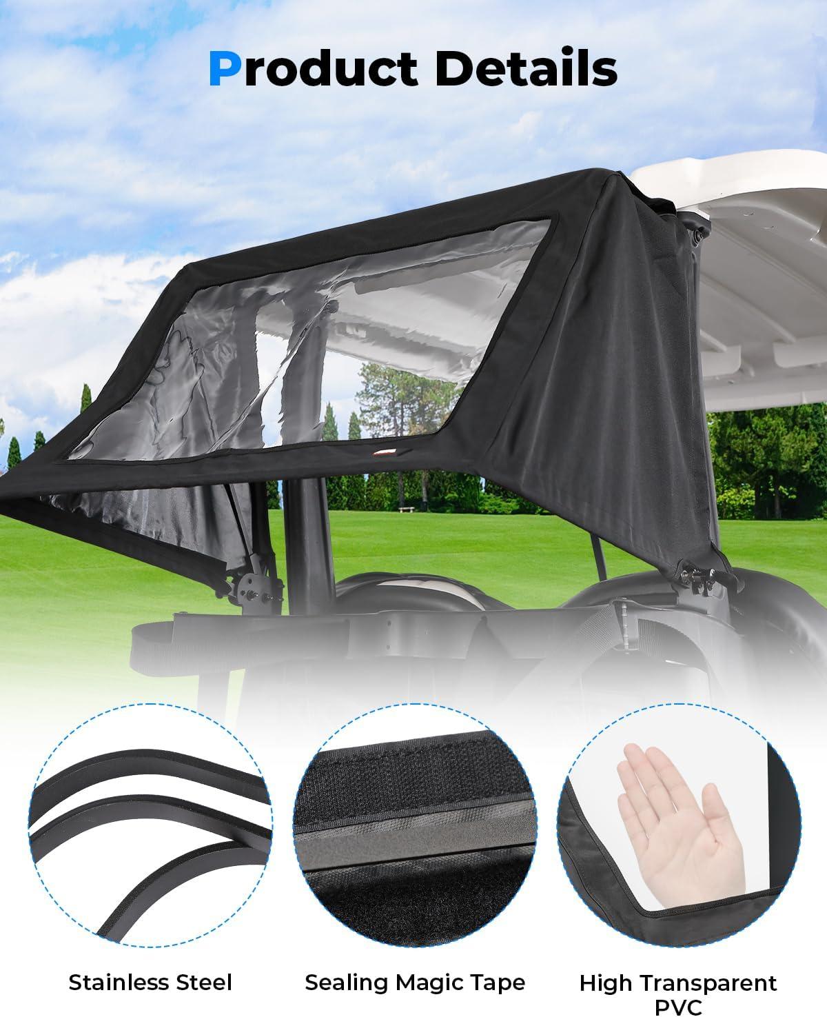 Protect golf bag: The super clear PVC windows help you see more clearly behind you when driving or reversing. Effectively protects your golf bags and clubs from rain, wind, and other bad weather conditions