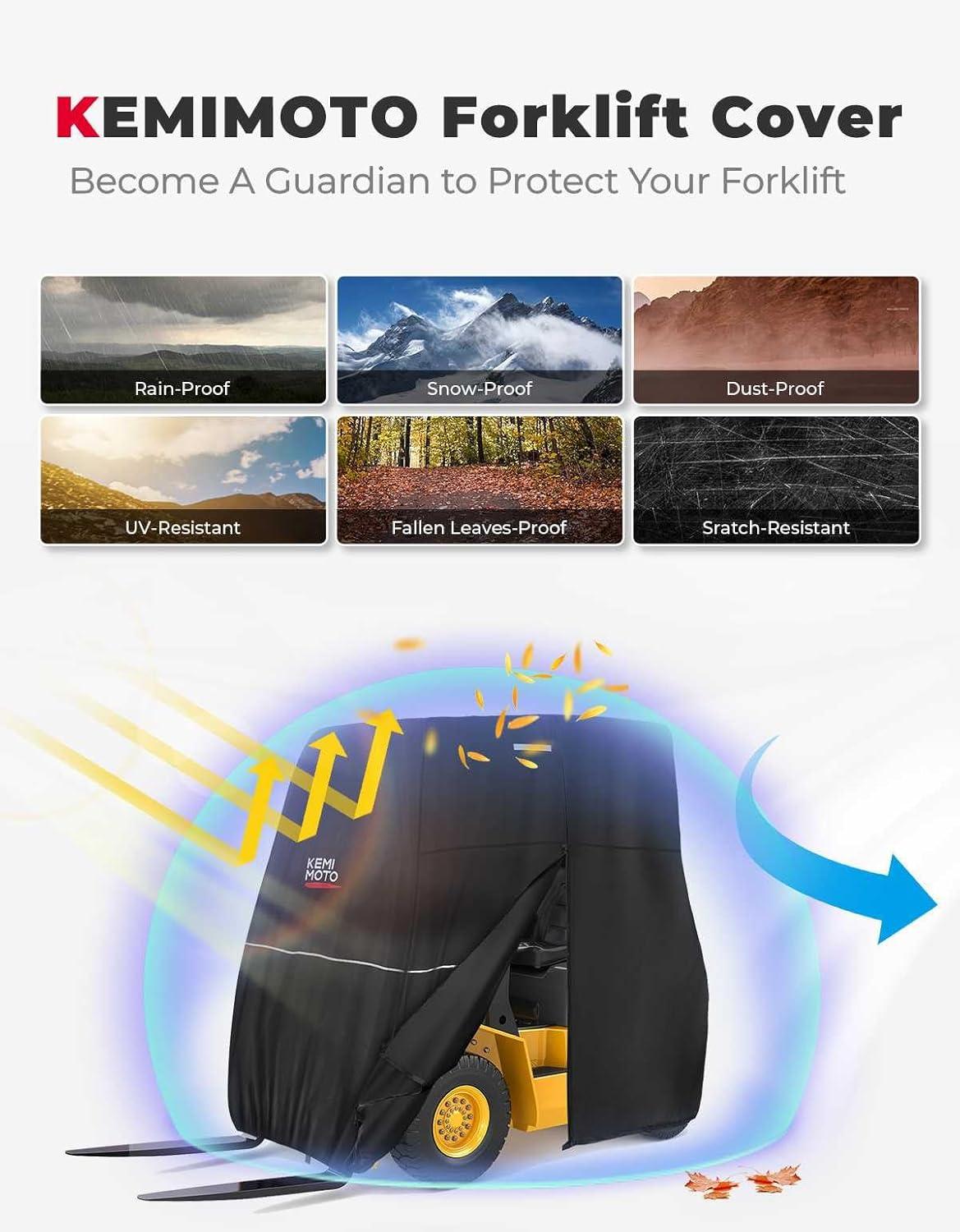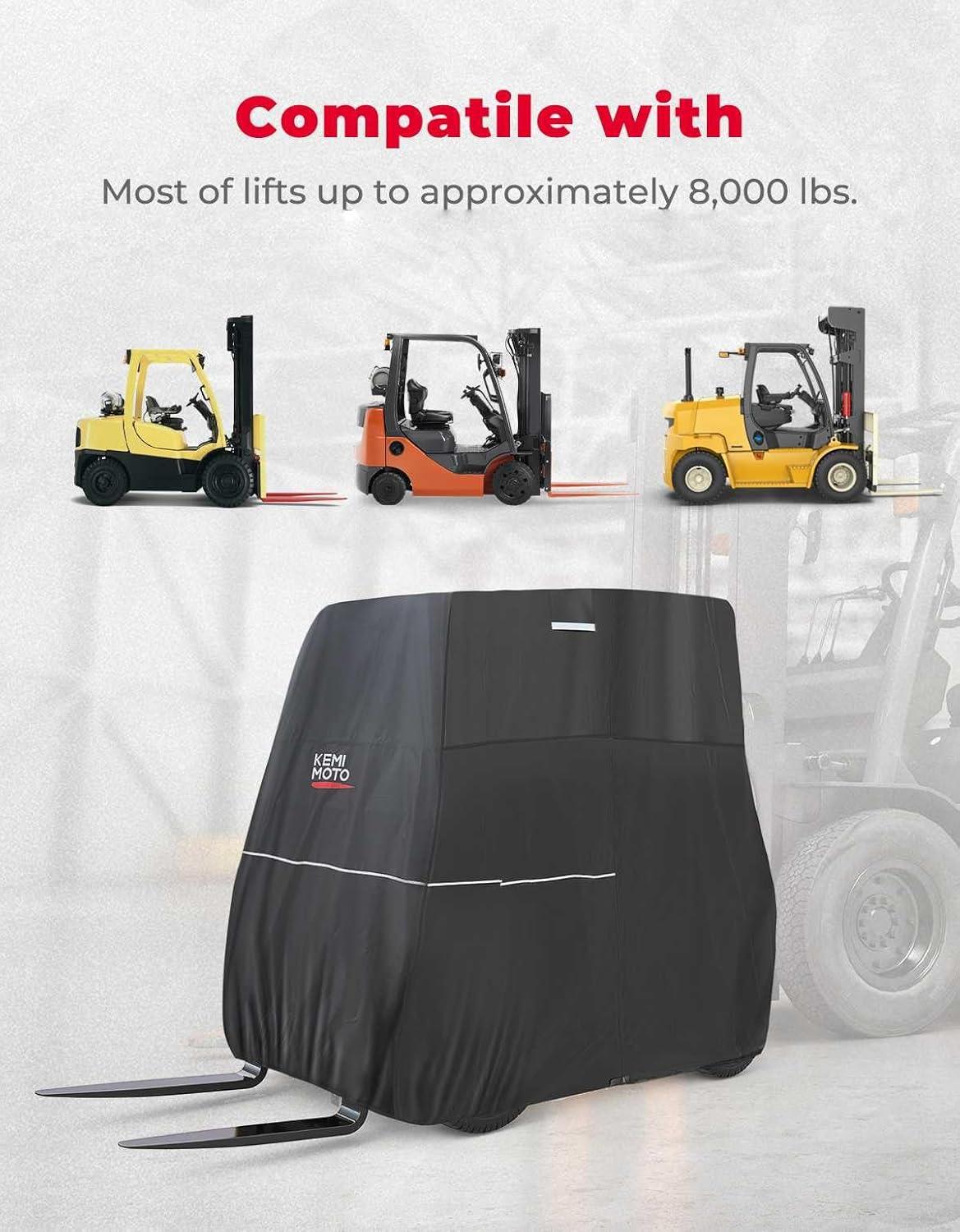 Larger Cover Size: 104.3″L x 49.2″W x 80.3″H/265*125*204cm,KEMIMOTO Forklifts Cover compatible with all lifts up to approximately 8,000 lbs. Our forklift cover is larger than most waterproof covers on the market