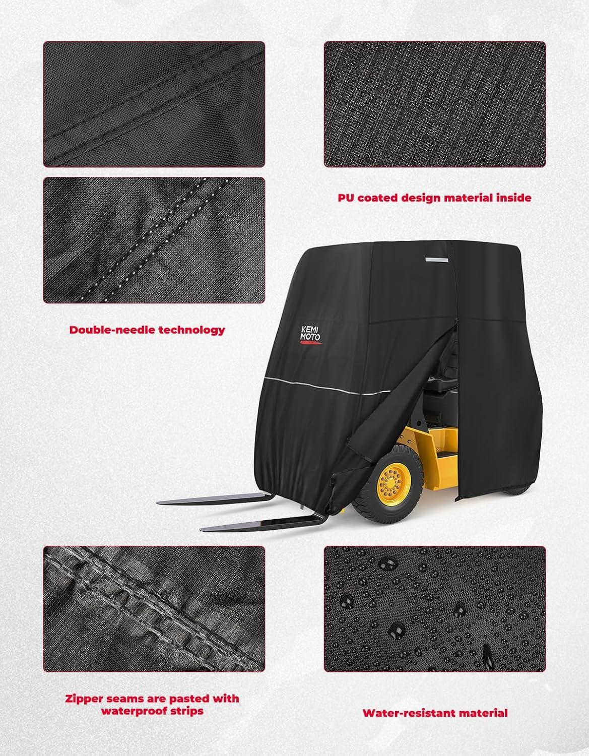 Package: KEMIMOTO Forklifts Cover includes 1* Forklift Cover and 1* Storage Bag. You can fold the cover to storage bag when you not use it