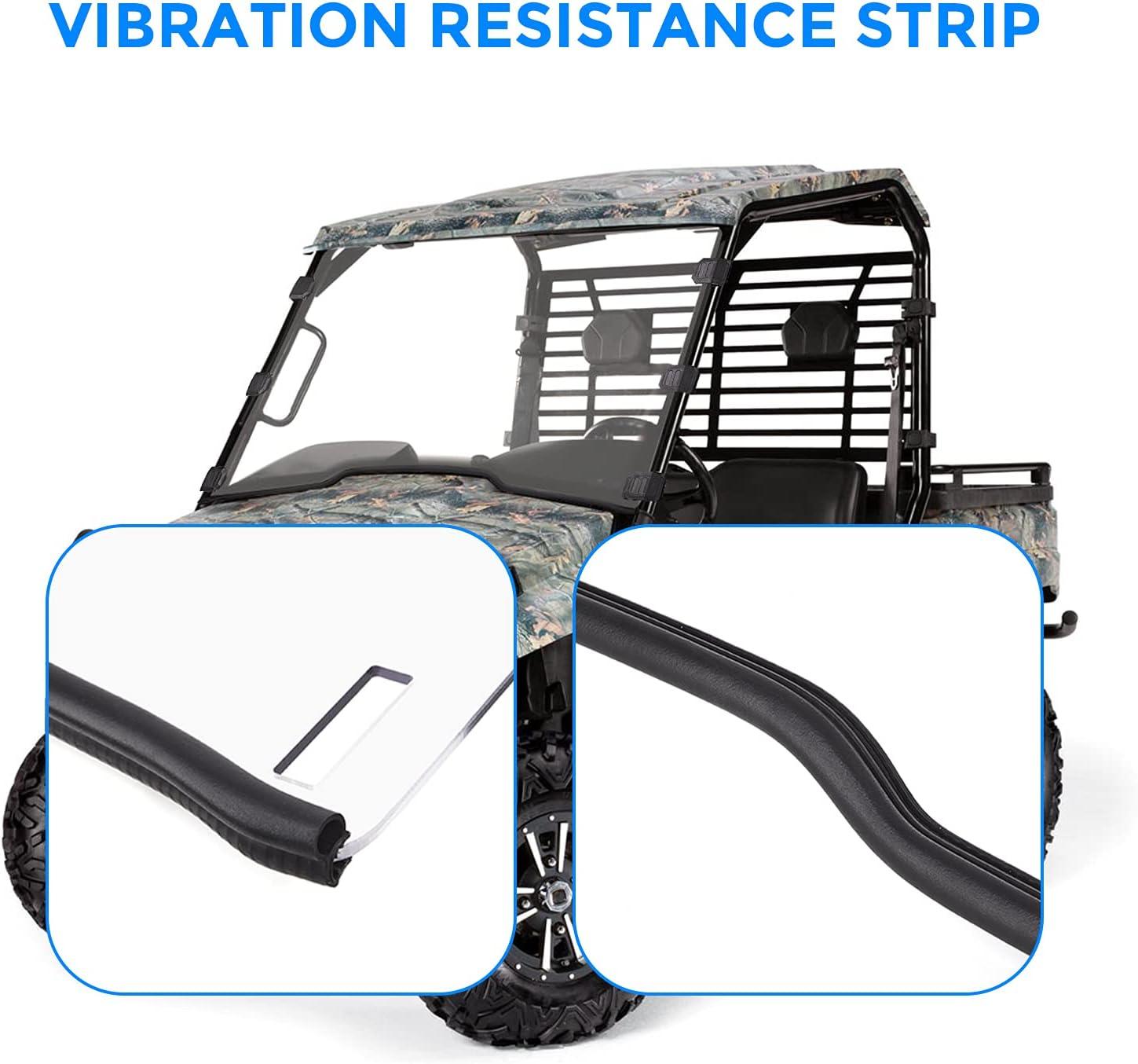 Vibration Resistance Strip: The UTV's body-to-windshield weather stripping not only keeps the windshield from rattling about on rough roads but also dampens the vibrations created by the complete windshield's interaction with the vehicle's frame