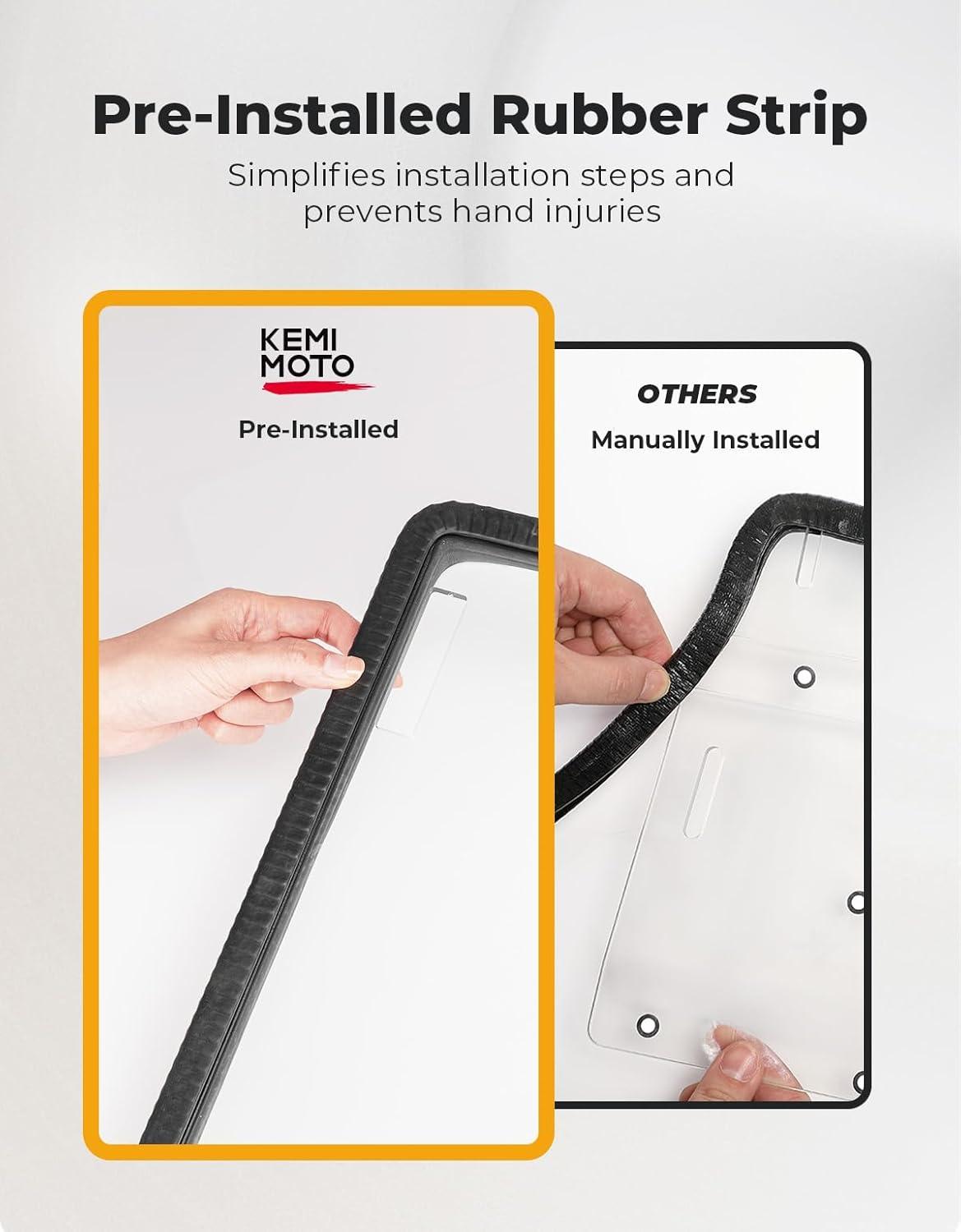 Pre-Installed Rubber Strip: The rubber strip is already attached to the windshield, saving you time during installation and protecting your hands from possible scratches. This pre-installed strip provides a tighter seal and a better fit than if you installed it yourself