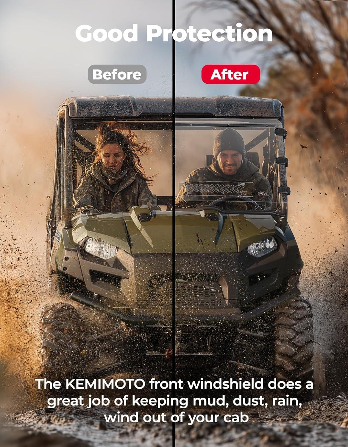 Block 99% UV Rays: We have tested that KEMIMOTO UTV windshield blocks 99% of UV rays, significantly reducing summer heat, minimizing driving glare, and protecting interior materials from aging