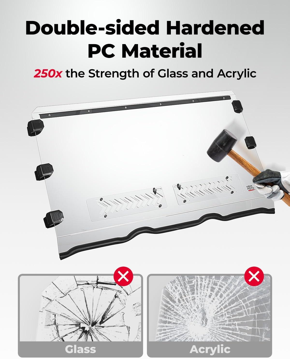 Quick & Easy Installation: No drilling required—install the front window by yourself in minutes. The package includes a step-by-step manual and all necessary hardware, so you don’t need to waste time gathering extra tools. Everything you need is included for a quick, tool-free setup