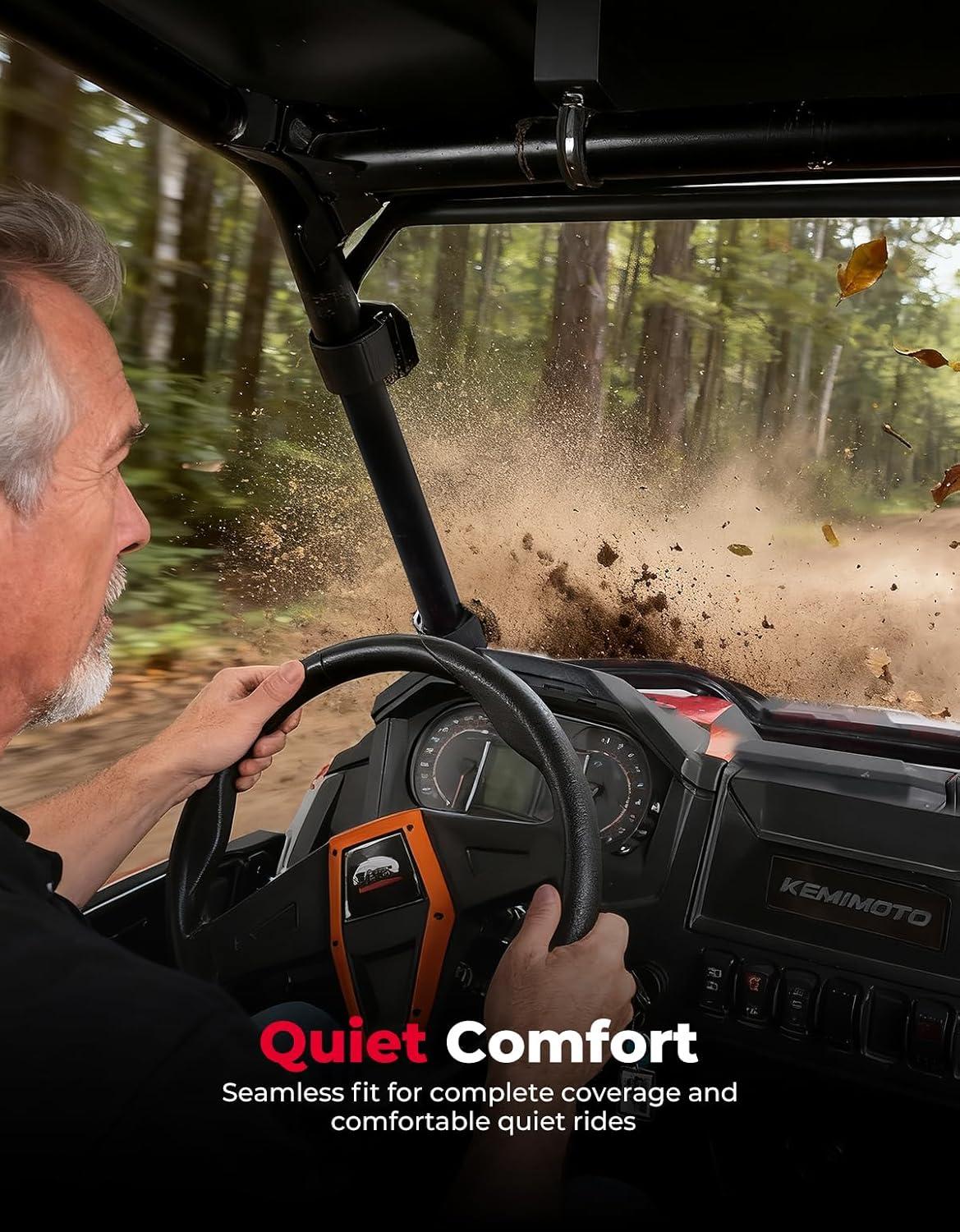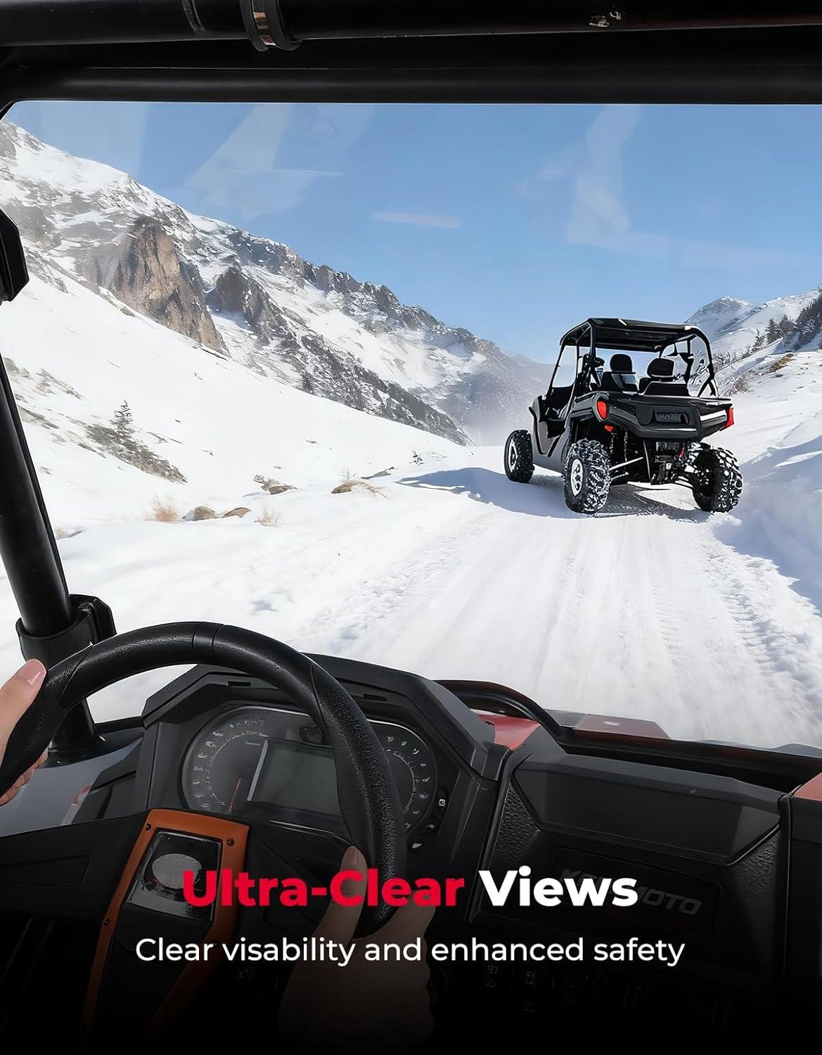 Protective Hard Coating: The KEMIMOTO UTV windshield features a hard coating on the surface, which offers excellent anti-scratch and anti-corrosion properties, helping you travel safely across deserts and forests. Tip: The hard coating can provide a service life of 1-3 years; however, performance may decline over time due to cleaning methods or usage scenarios